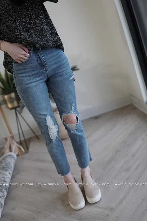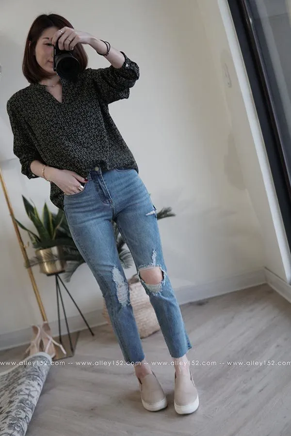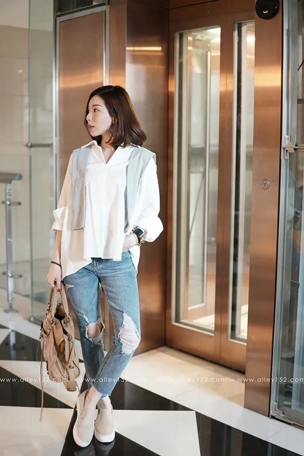 褲腳的不收邊更顯隨性,很符合略直筒的率性:)