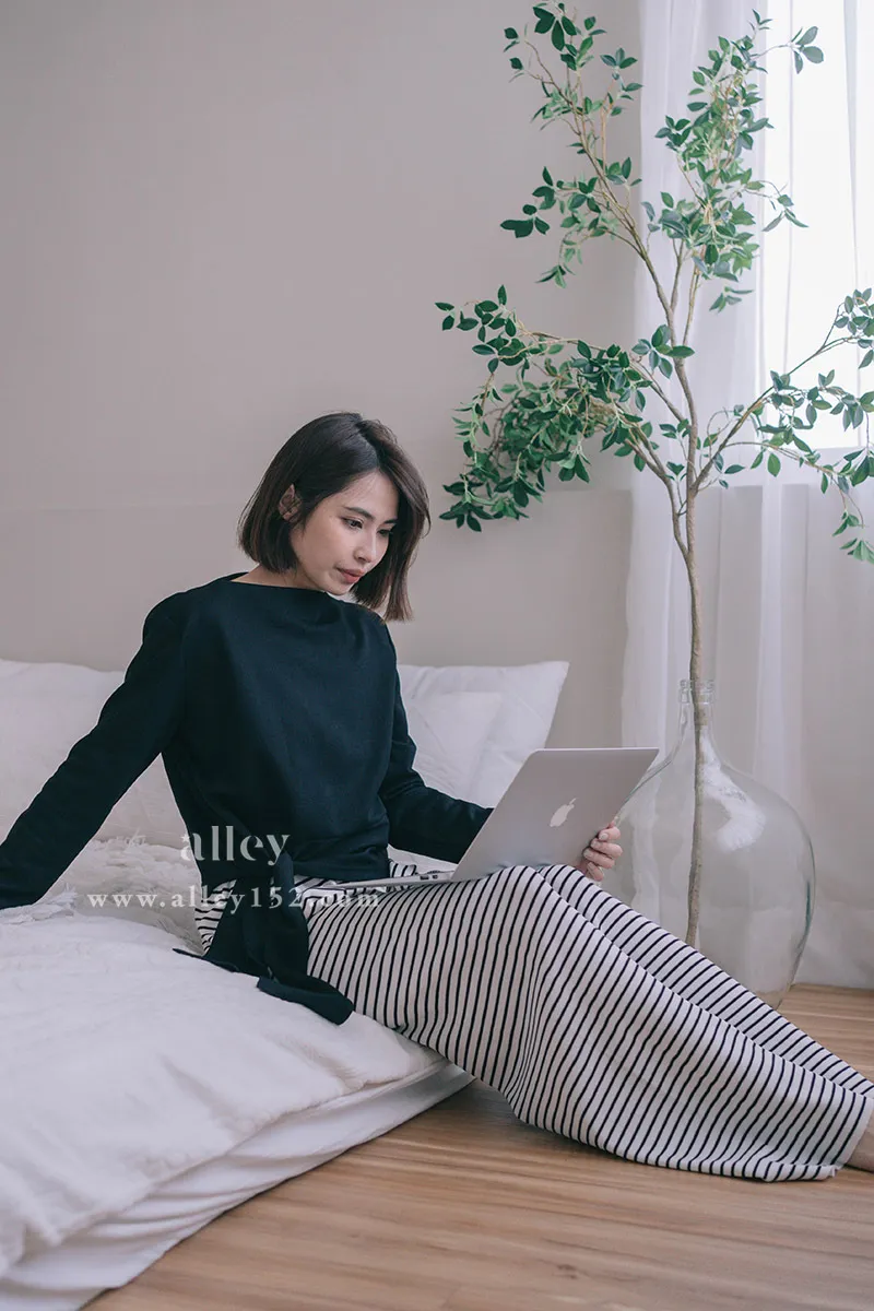 採購在一旁看到驕傲地說:「對吧~這款穿上去看起來腿長又瘦!」