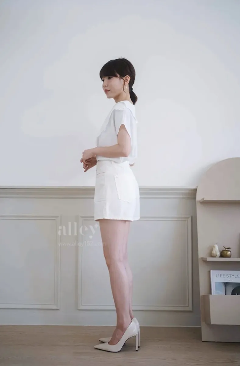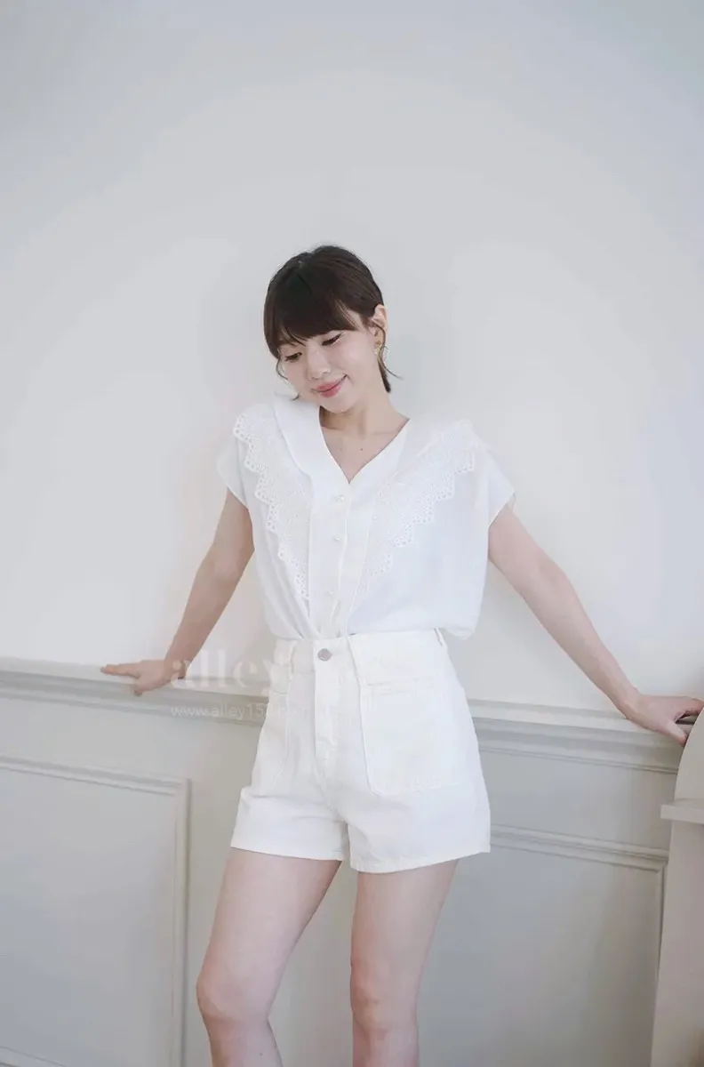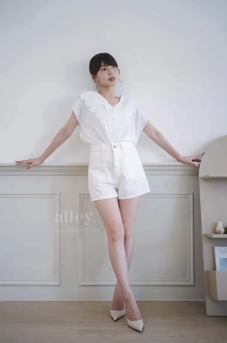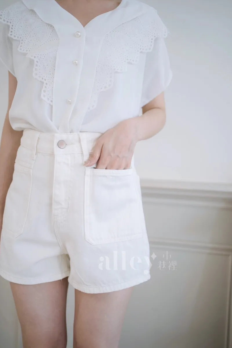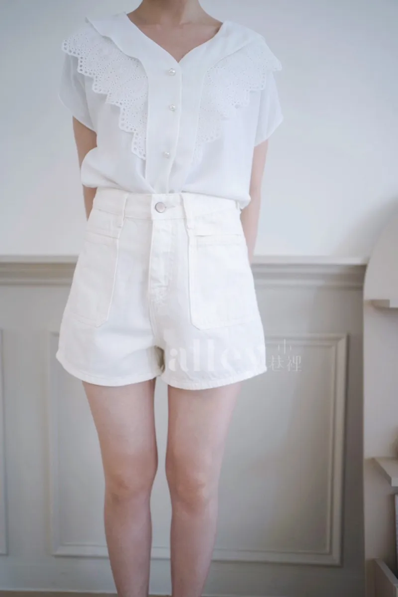 夏天必備的一件白色牛仔短褲~