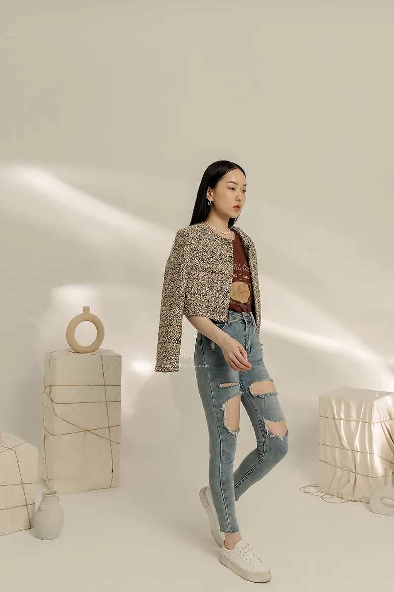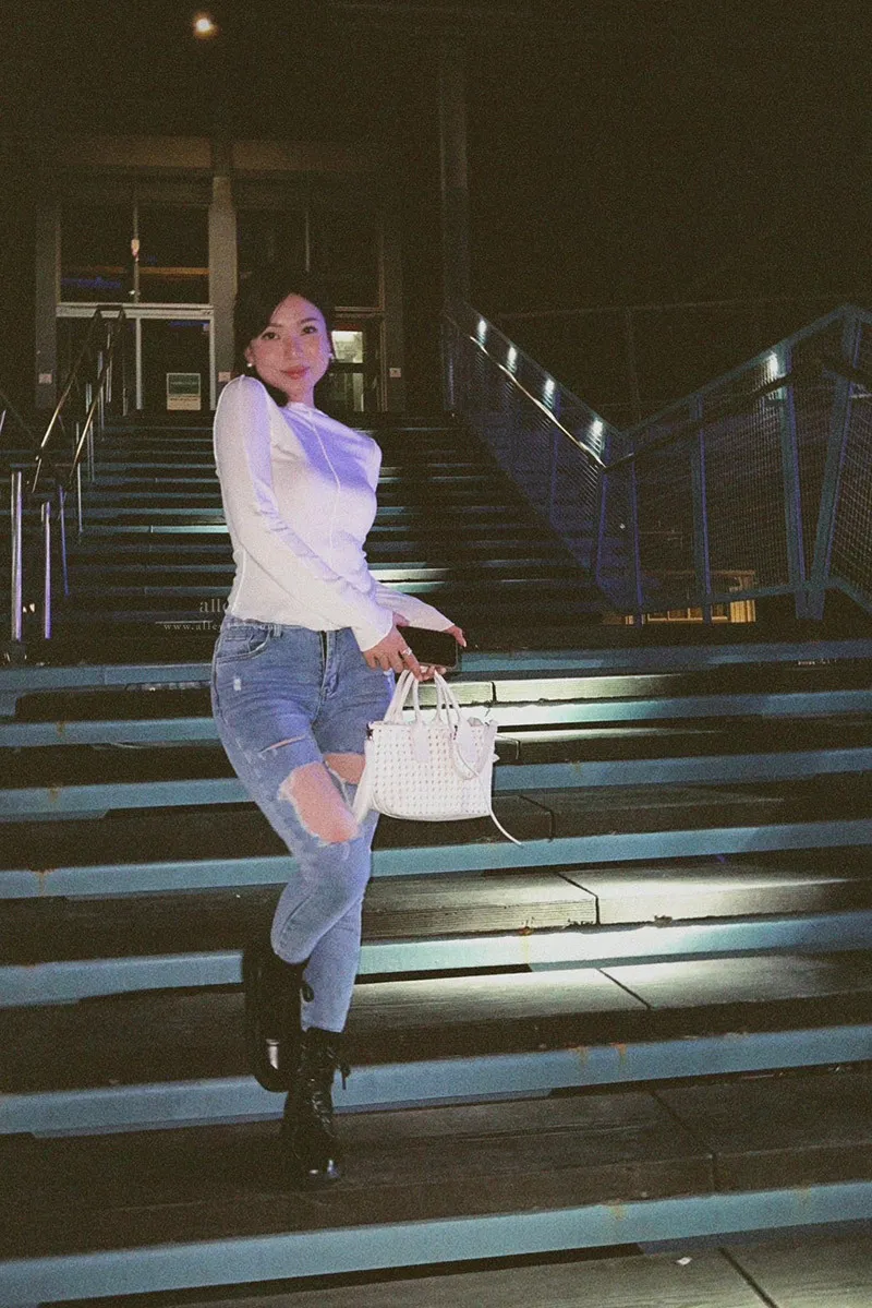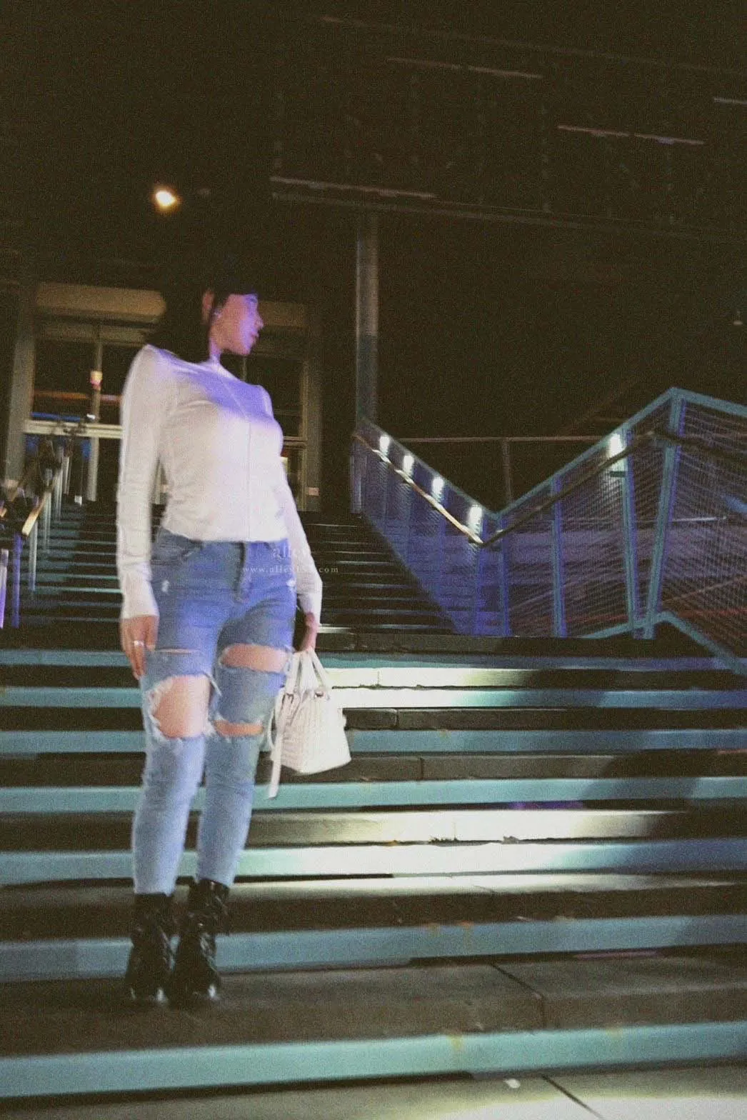 再拿件T-shirt和靴子,完全就是街拍模特啊!
