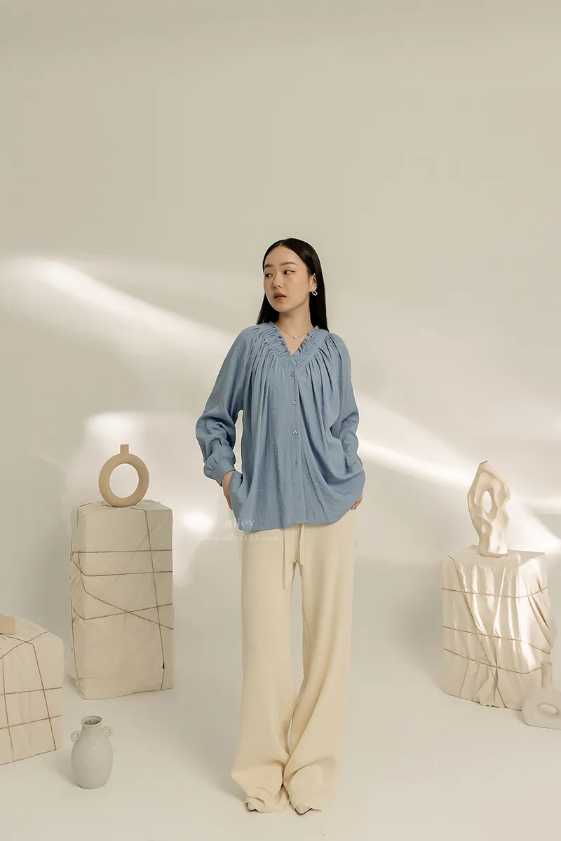 寬褲的垂墜感自然,很好的修飾大腿肉