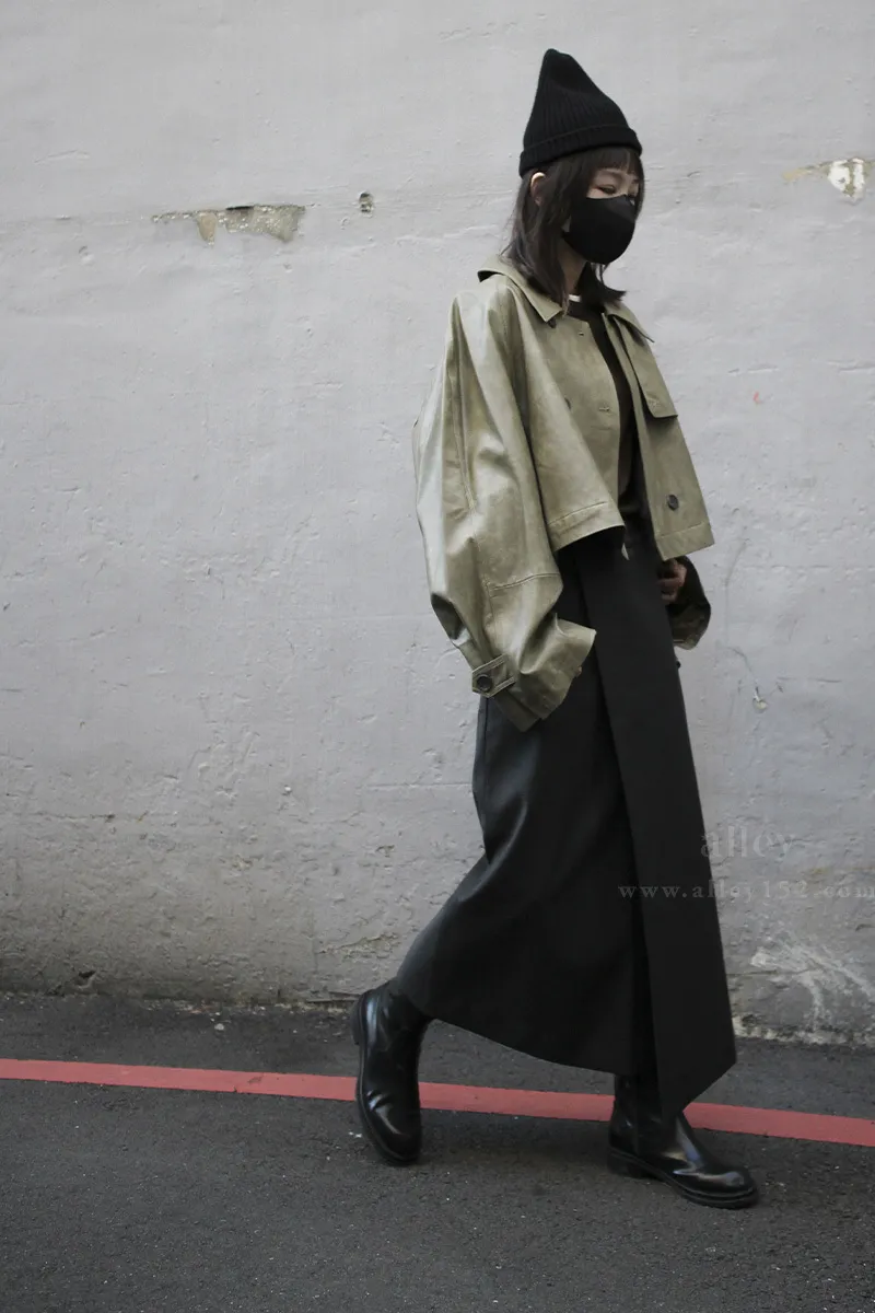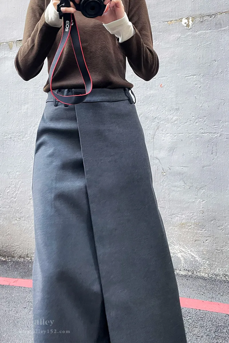 純羊毛不易皺!A-Line斜釦式西裝裙