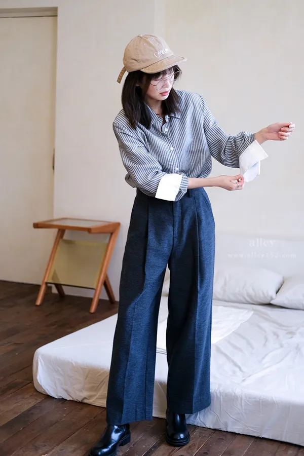 【100%棉】仿麻打褶直筒九分西裝長褲