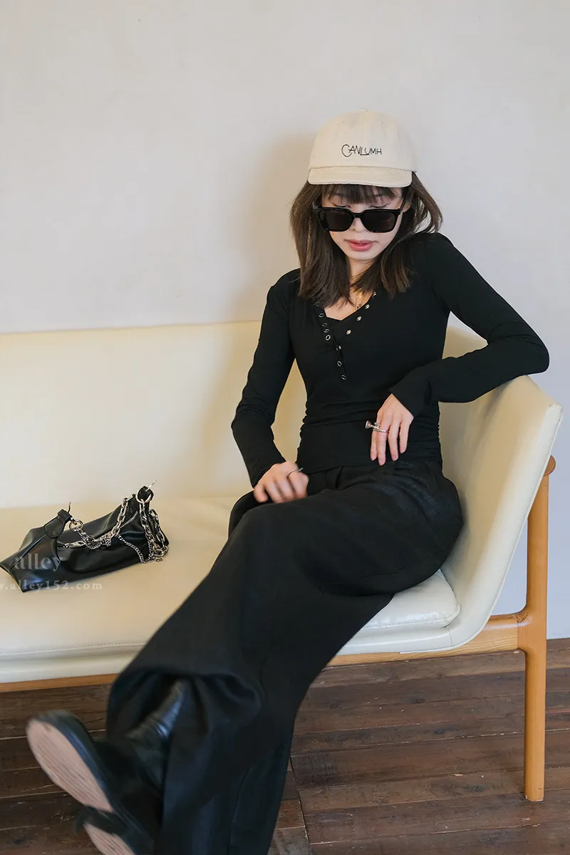 'ph7oebe'天絲亞麻人字紋收腰方領背心