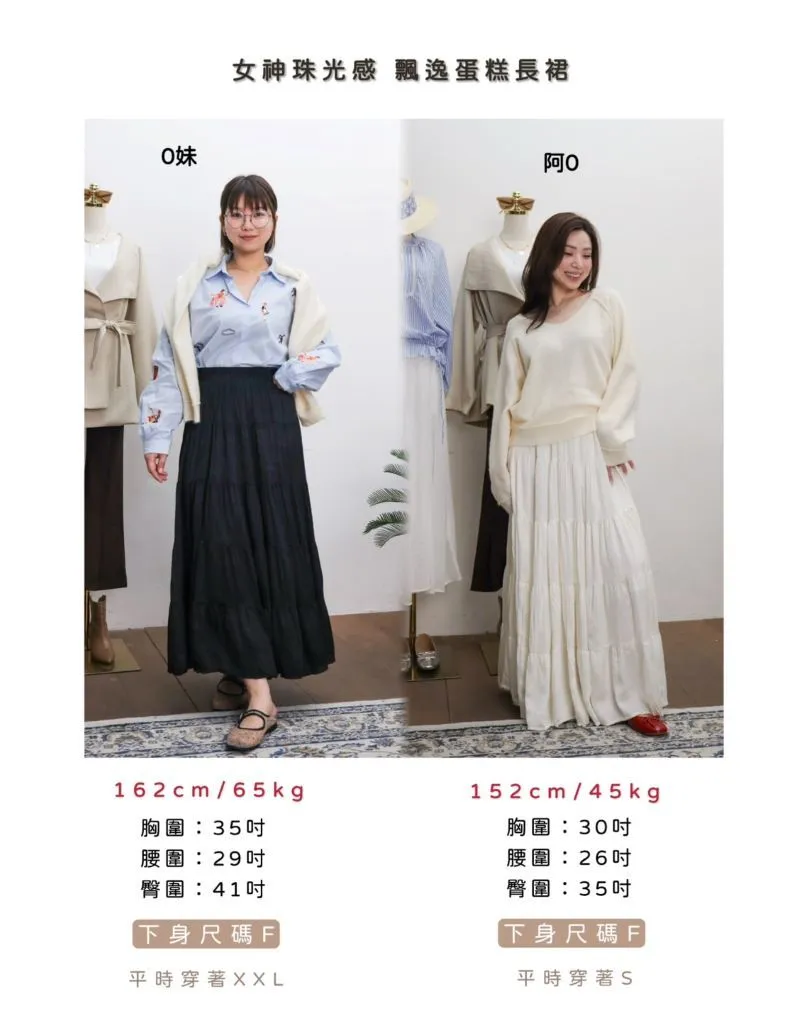 名字 身高 體重 胸圍 腰圍 臀圍 平常穿 此款穿 阿0 152cm 45kg 30吋 25吋 35吋 S F ▪️ 親膚度:⭐⭐⭐⭐⭐▪️ 材質:珠光感聚酯纖維▪️ 彈性:無彈性▪️ 其他:不刺/不透/有內裡/裙頭鬆緊帶/無口袋