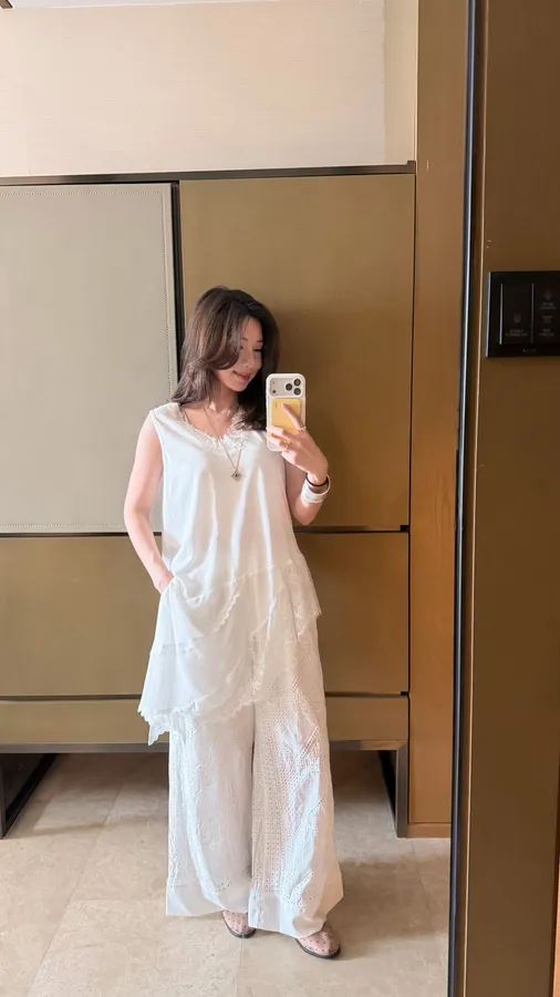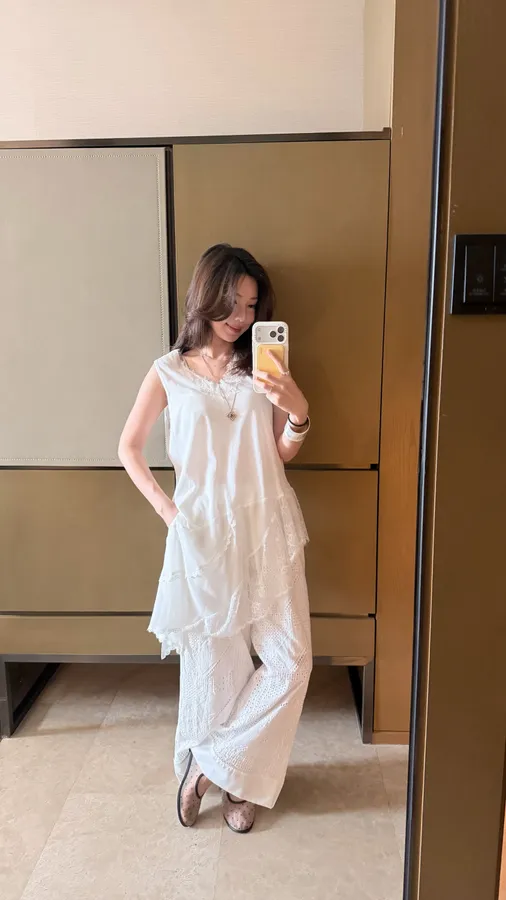 S08可搭成套 花卉縷空設計感長褲