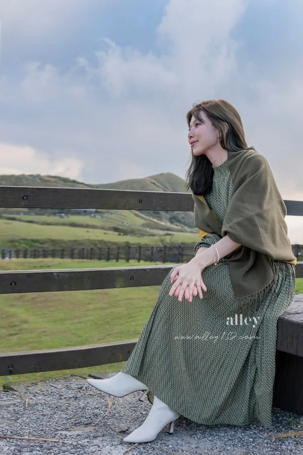 今天穿的素一點,把圍巾折半來搭配或拿來當披肩非常完美