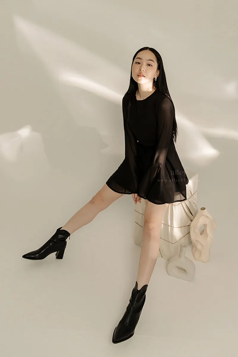 最大的特點是靴子上的小V領設計,露出一點點的腳踝