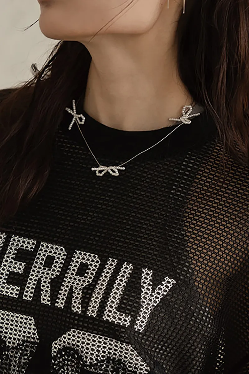 'ph7oebe'翩翩飛舞 珍珠蝴蝶結項鍊