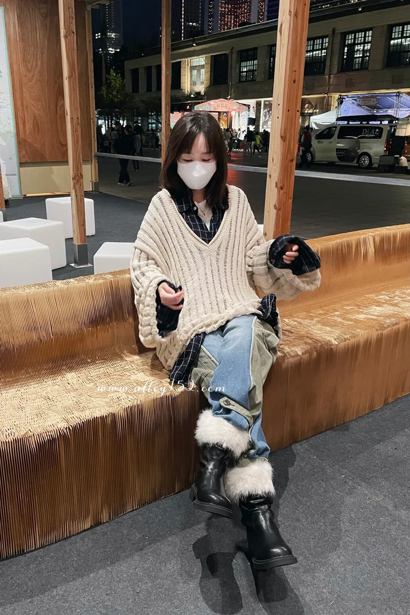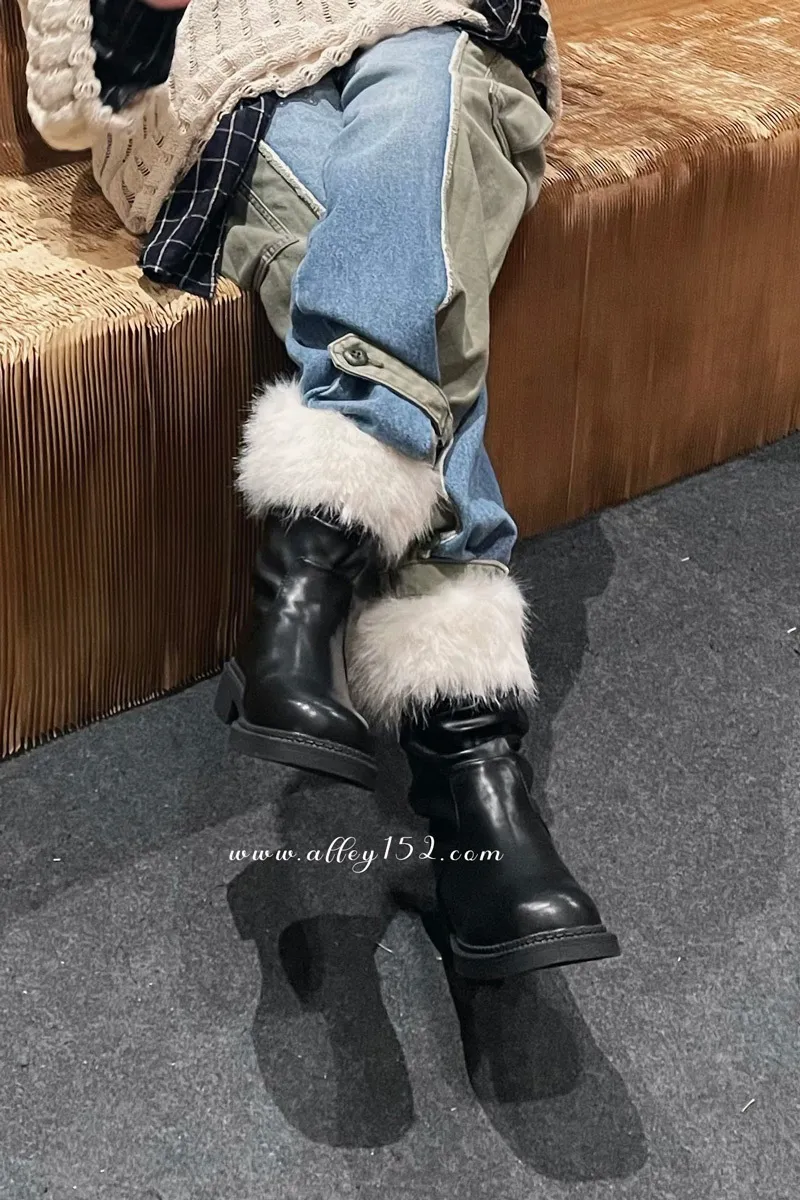 'ph7oebe'刷絨毛毛堆堆中長筒靴