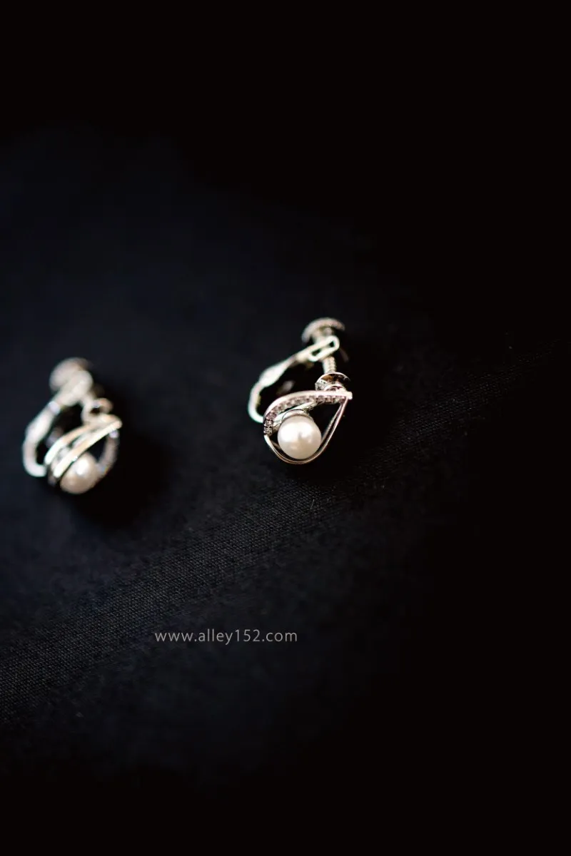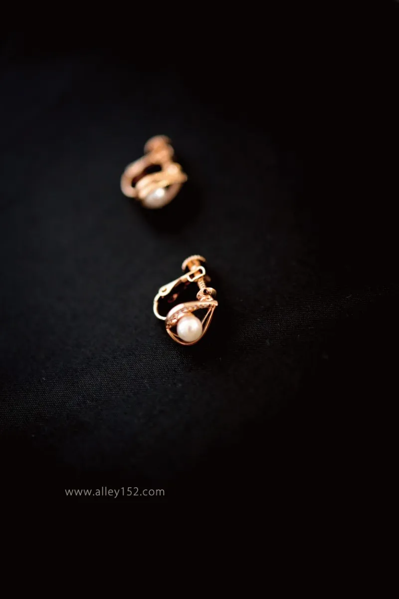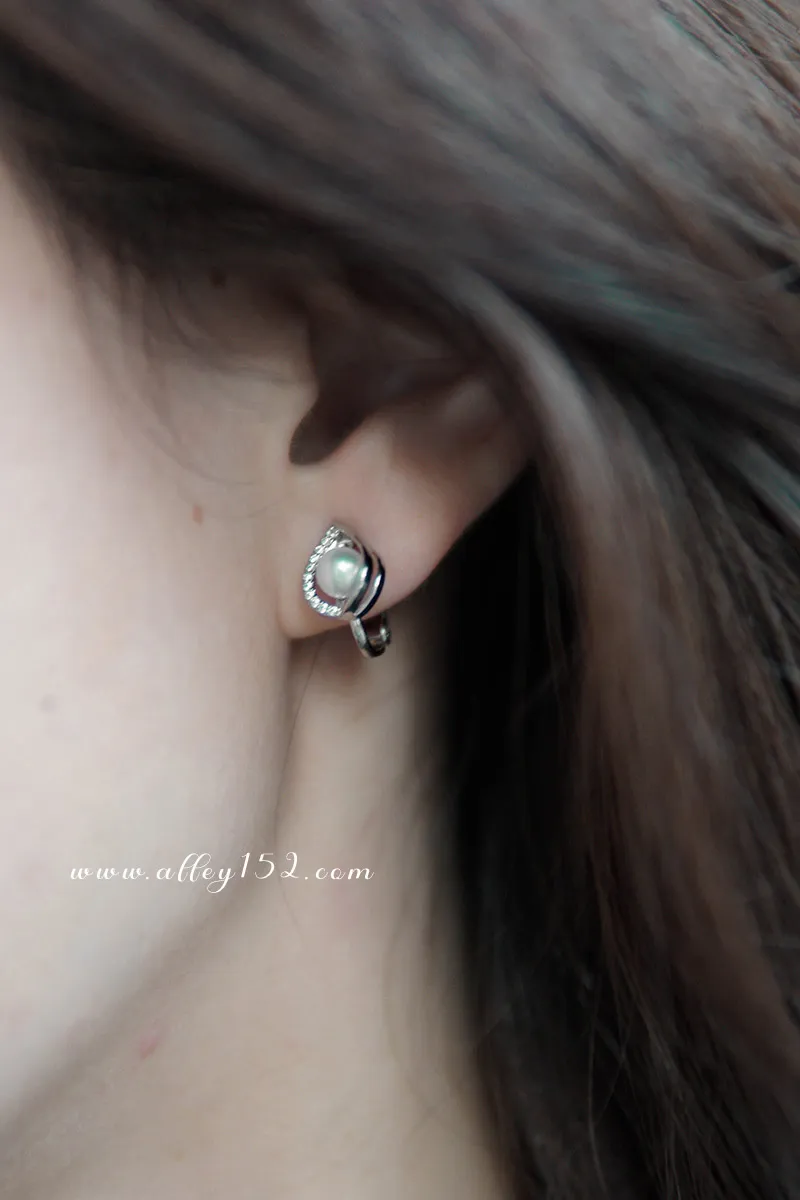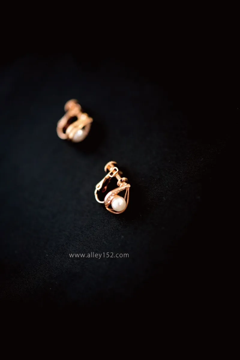 正韓 水滴型珍珠夾式耳環