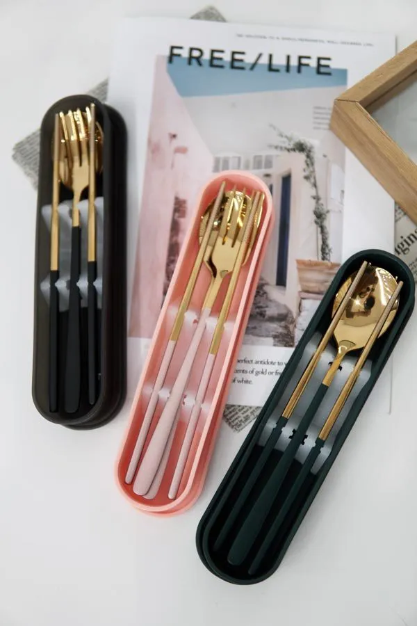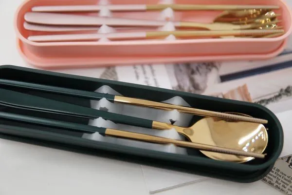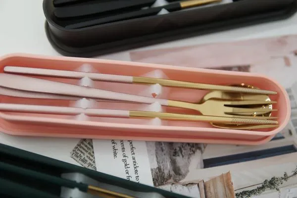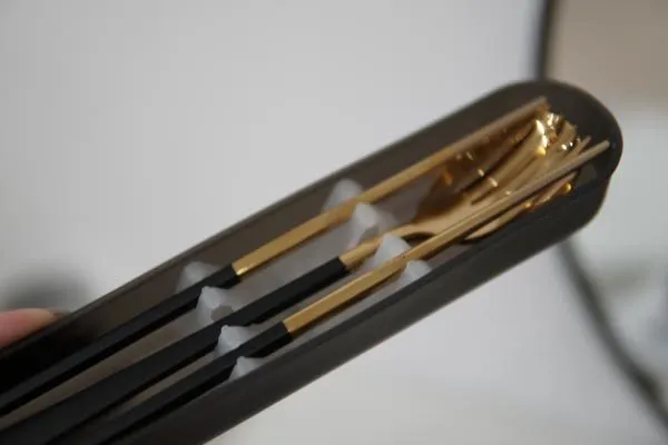 有叉子、筷子、湯匙、還有固定的透明器,放在包包裡不會很吵