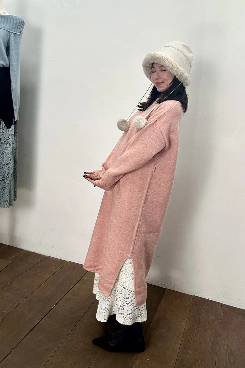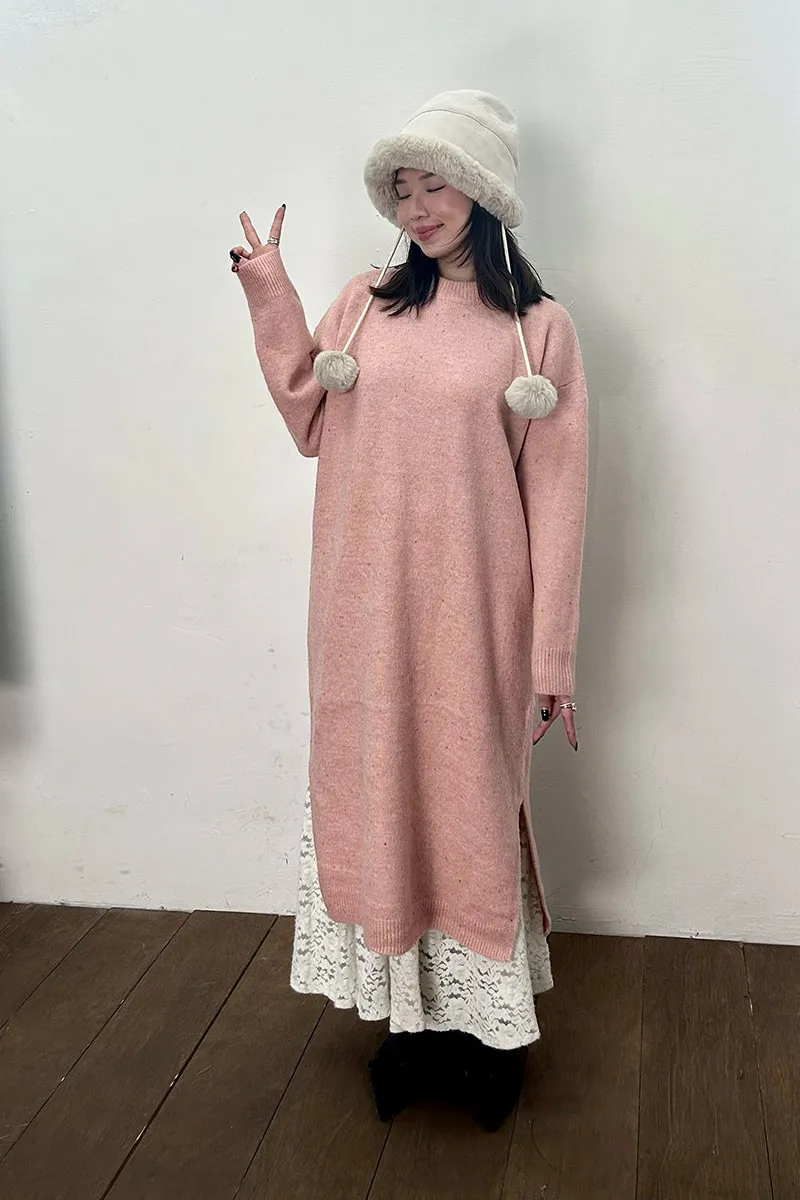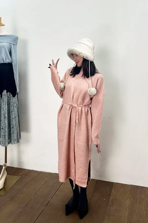 點彩附綁帶羊毛洋裝