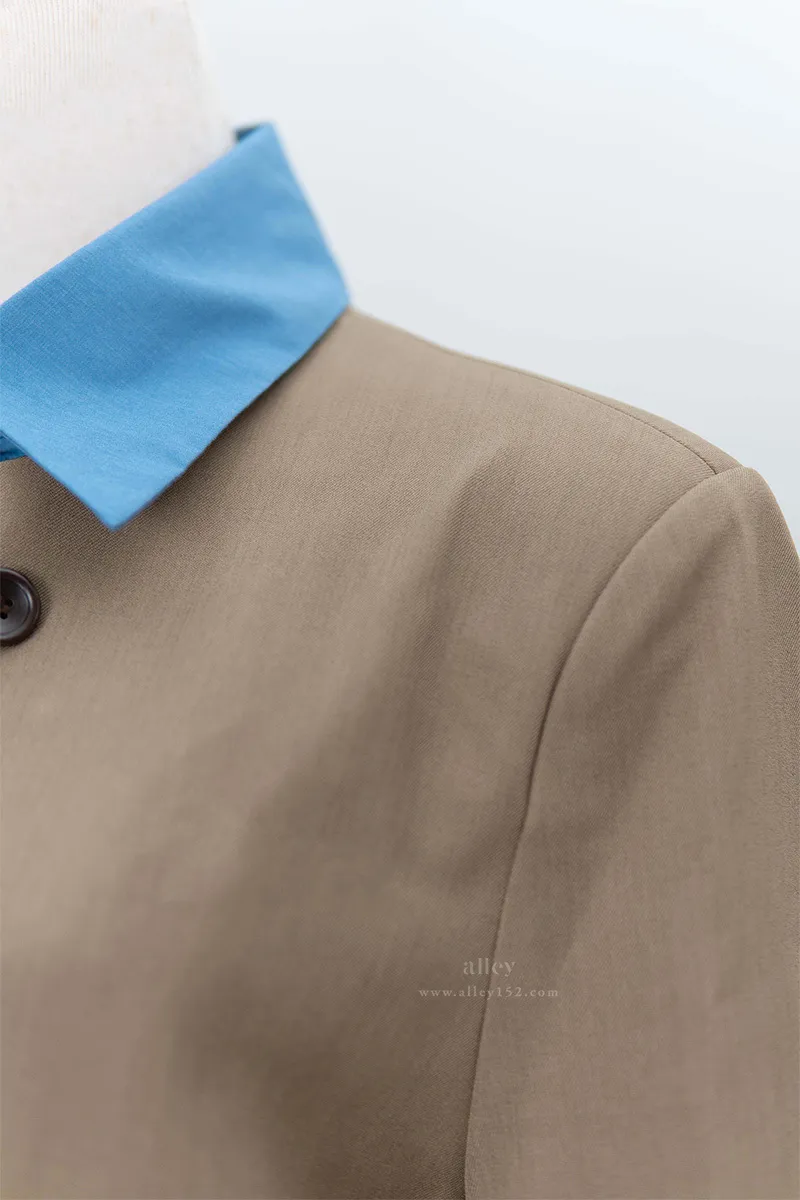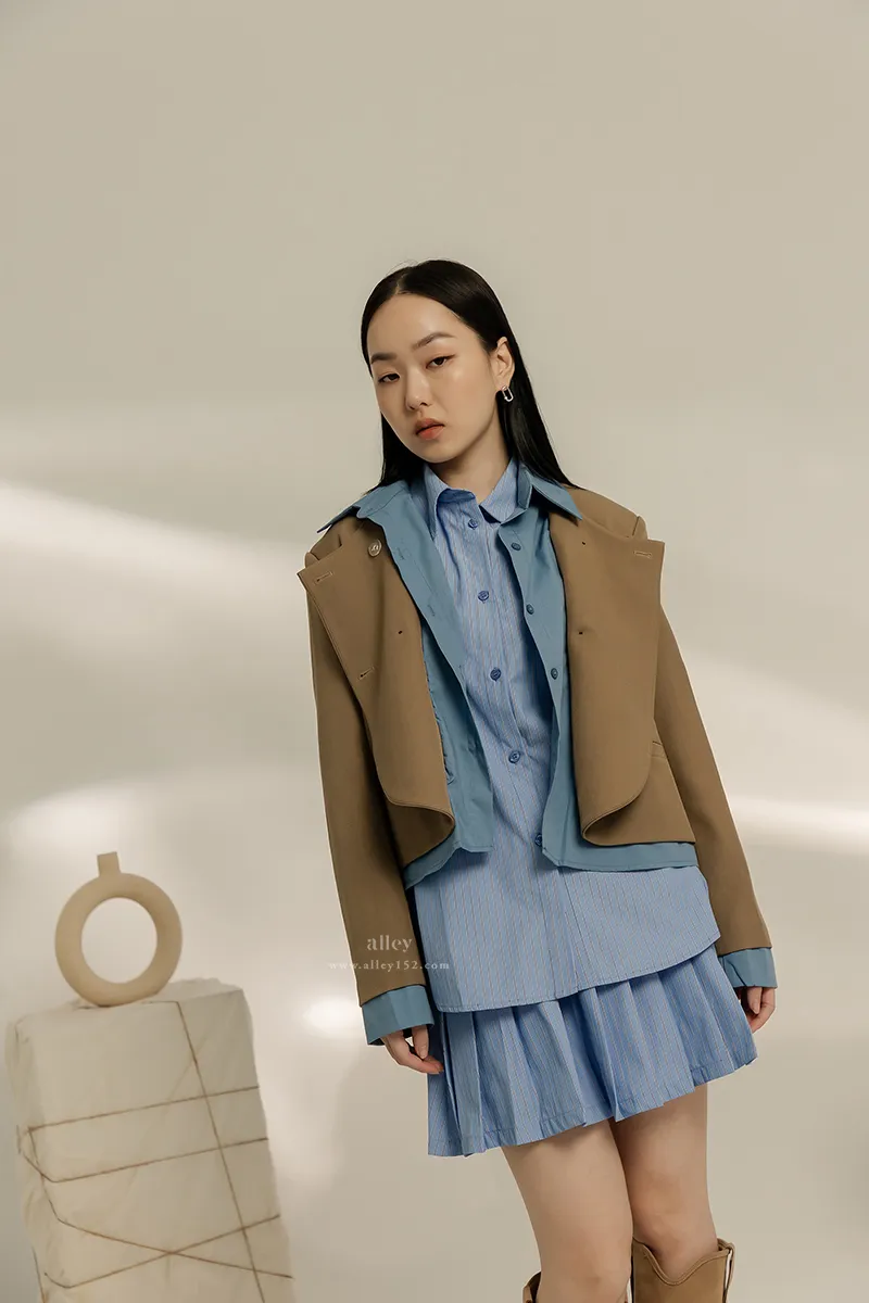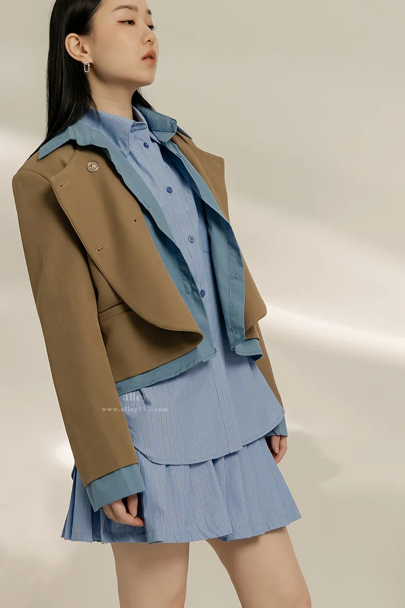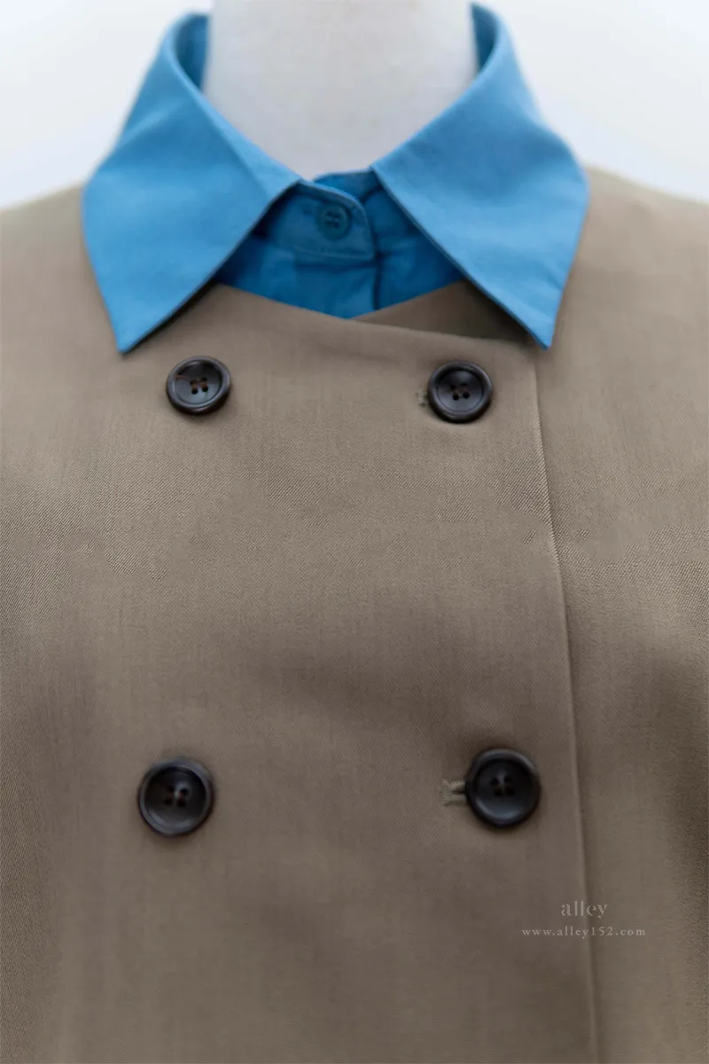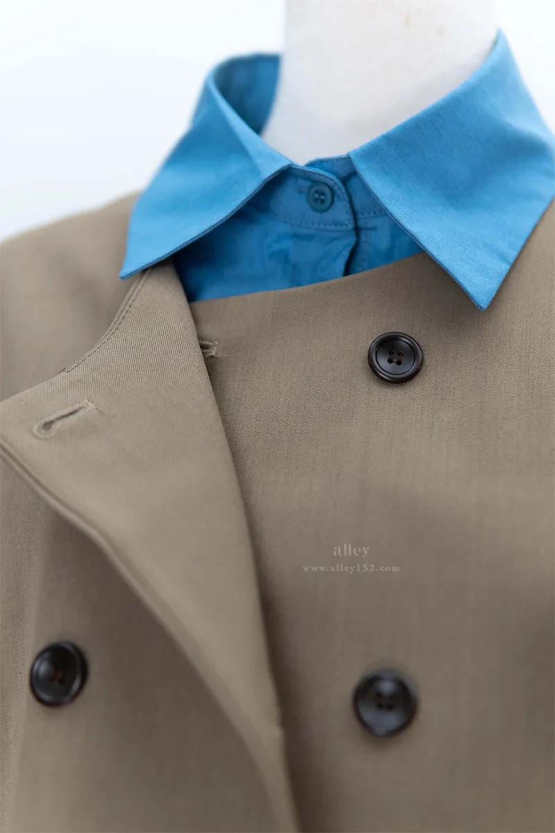 斜紋布(風衣布) / 有墊肩 / 假口袋 / 無彈性 / 不慈 / 不透