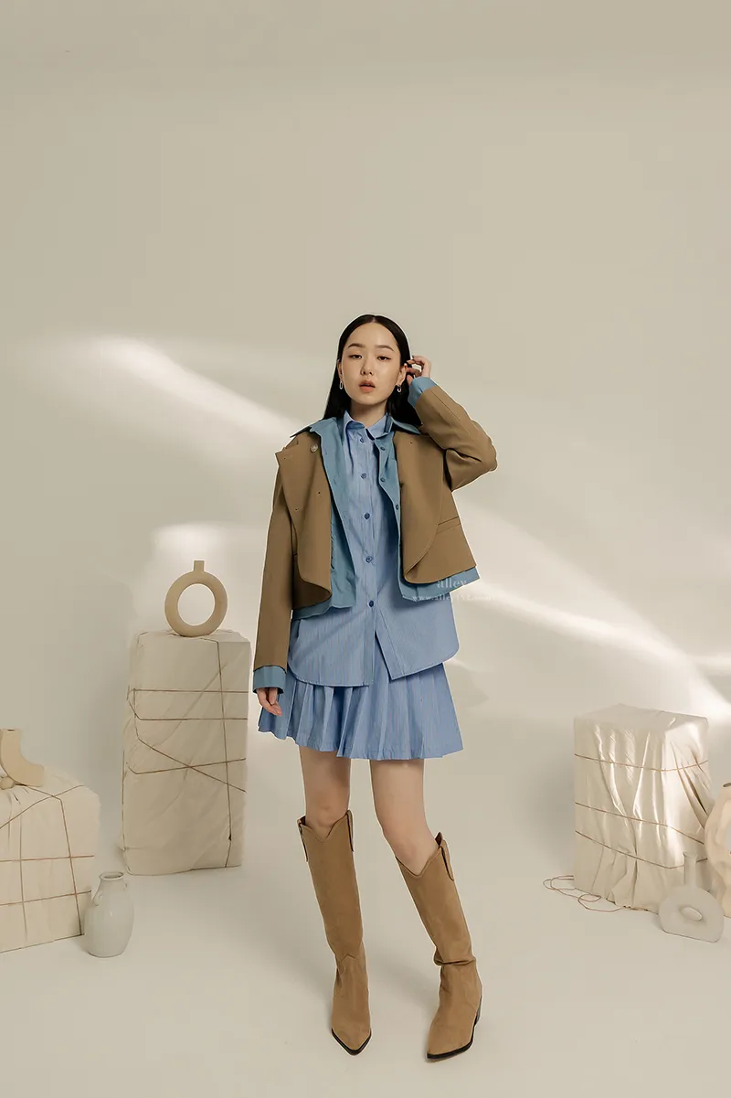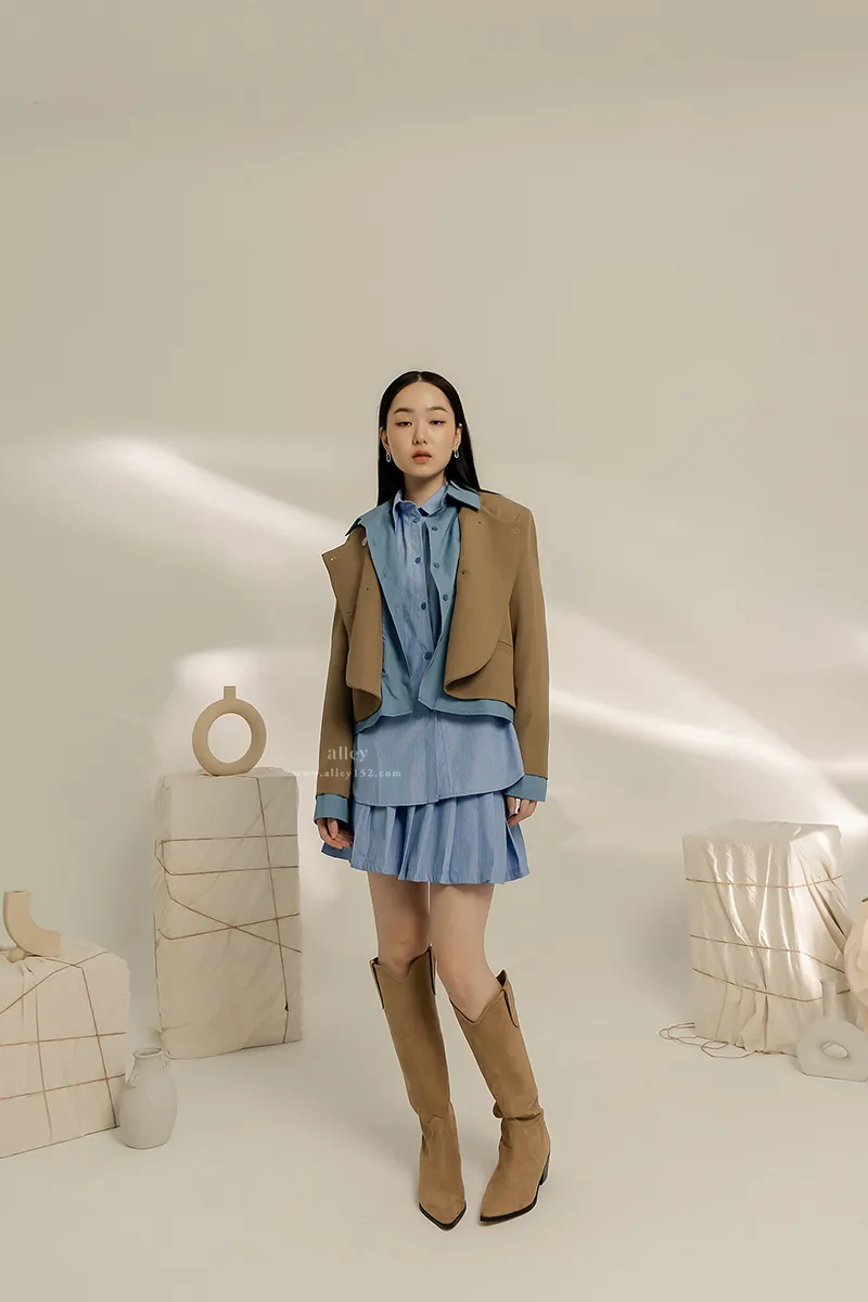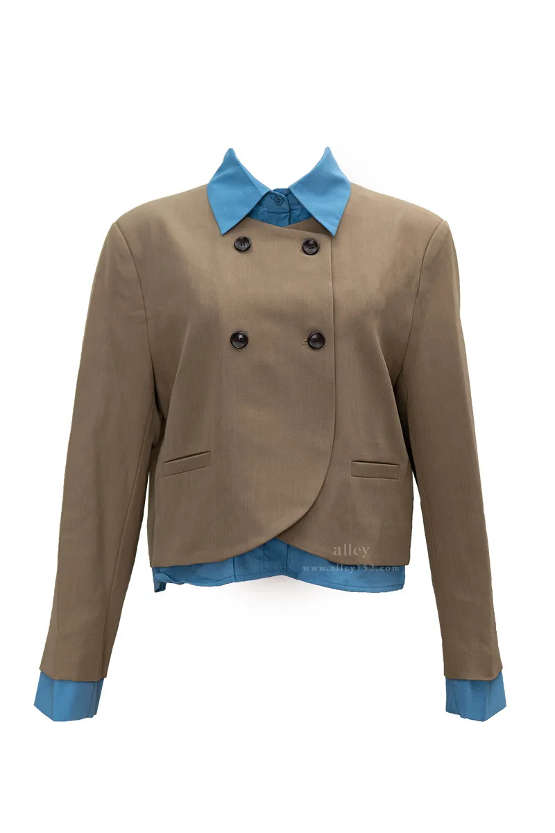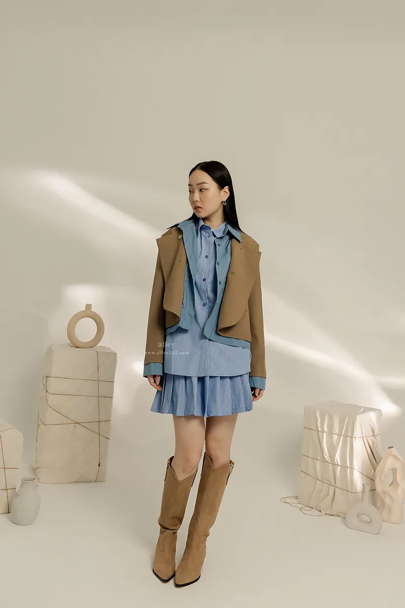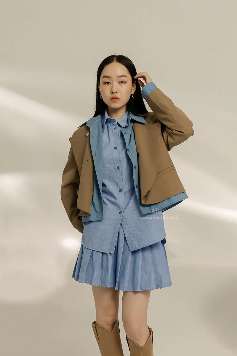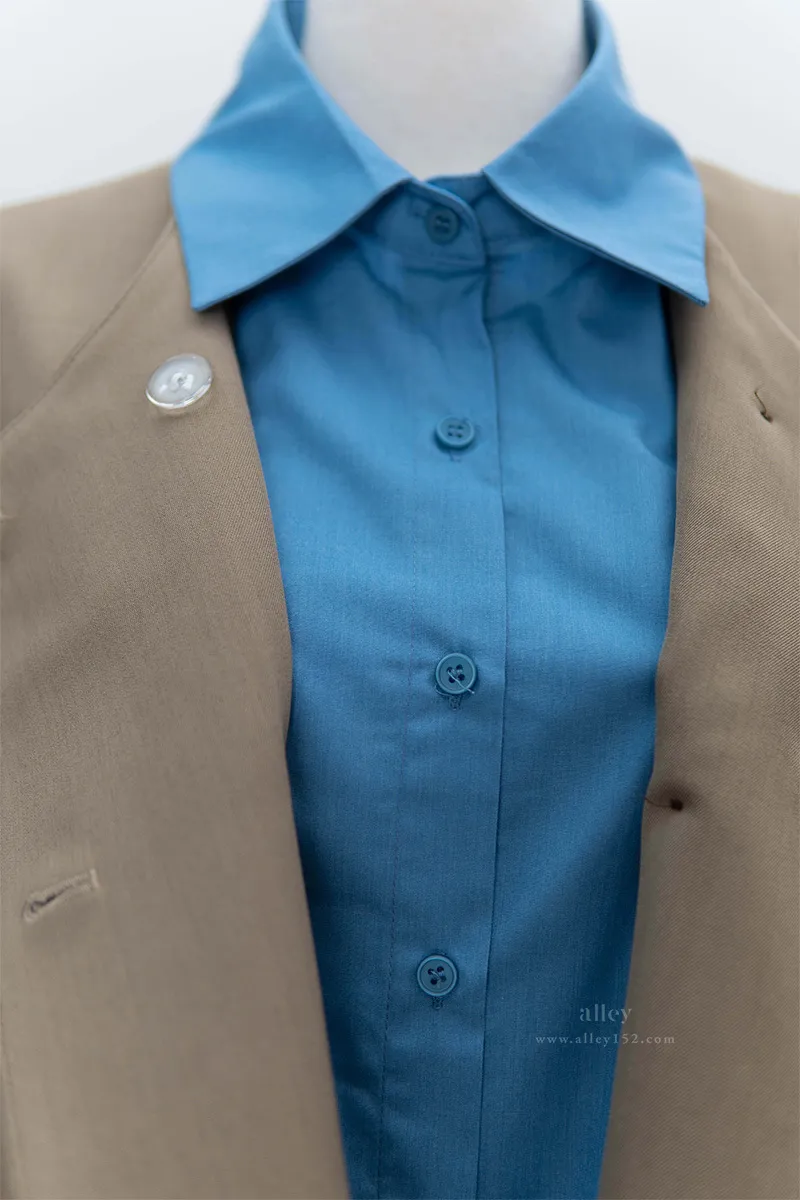 斜紋布(風衣布) / 有墊肩 / 假口袋 / 無彈性 / 不慈 / 不透