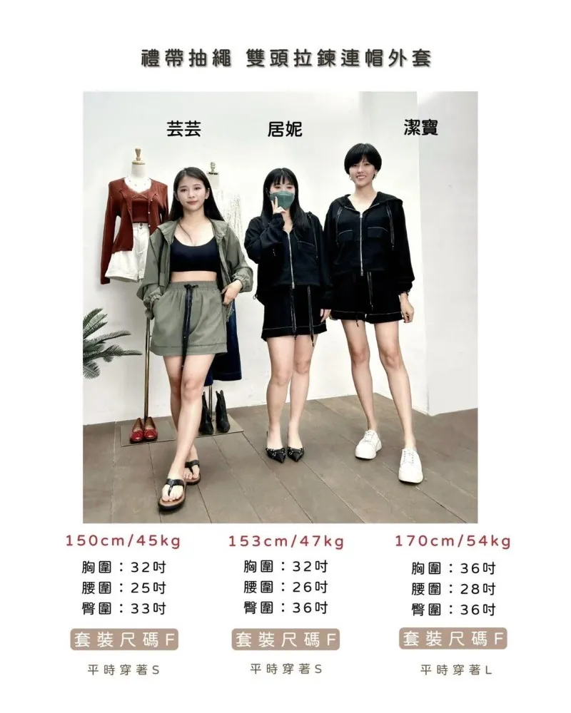 名字 身高 體重 胸圍 腰圍 臀圍 平常穿 此款穿 筱恬 162cm 45kg 30吋 24吋 36吋 S F ▪️ 親膚度:⭐⭐⭐⭐⭐▪️ 成分:100%聚脂纖維▪️ 彈性:微彈性▪️ 其他:不刺/不透/袖口鬆緊帶/下擺抽繩/有口袋/雙頭拉鍊