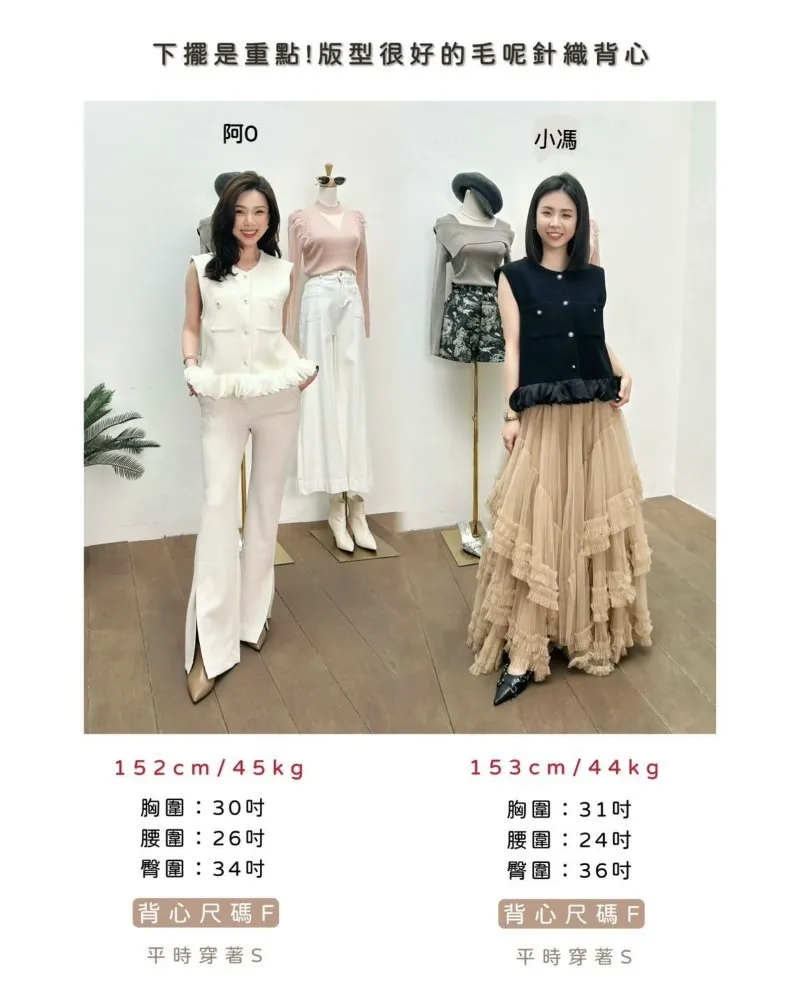 至10/31止,包色價兩件起,每件980$ 名字 身高 體重 胸圍 腰圍 臀圍 平常穿 此款穿 00 152cm 45kg 30吋 26吋 34吋 S F ▪️ 親膚度:⭐⭐⭐⭐⭐▪️ 成分:毛呢針織▪️ 彈性:有彈性▪️ 其他:不刺/不透/胸前有小口袋