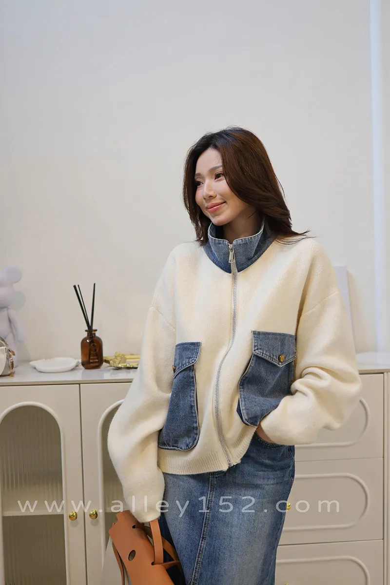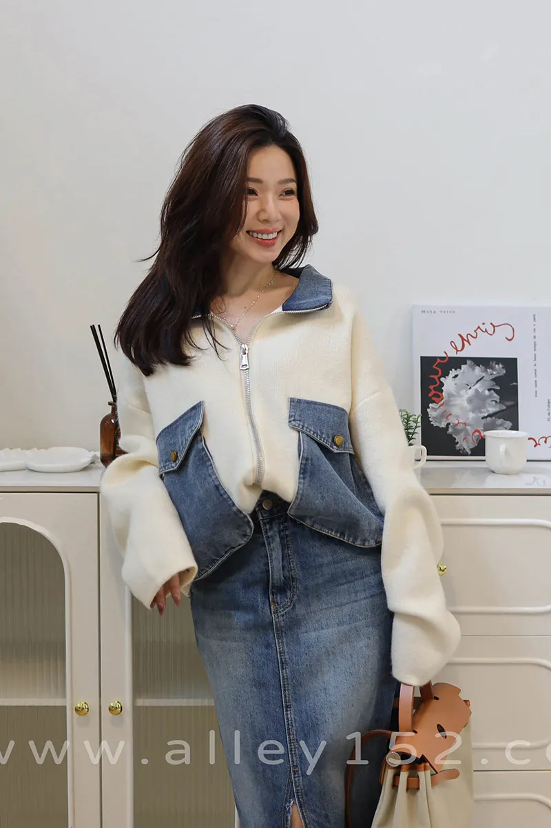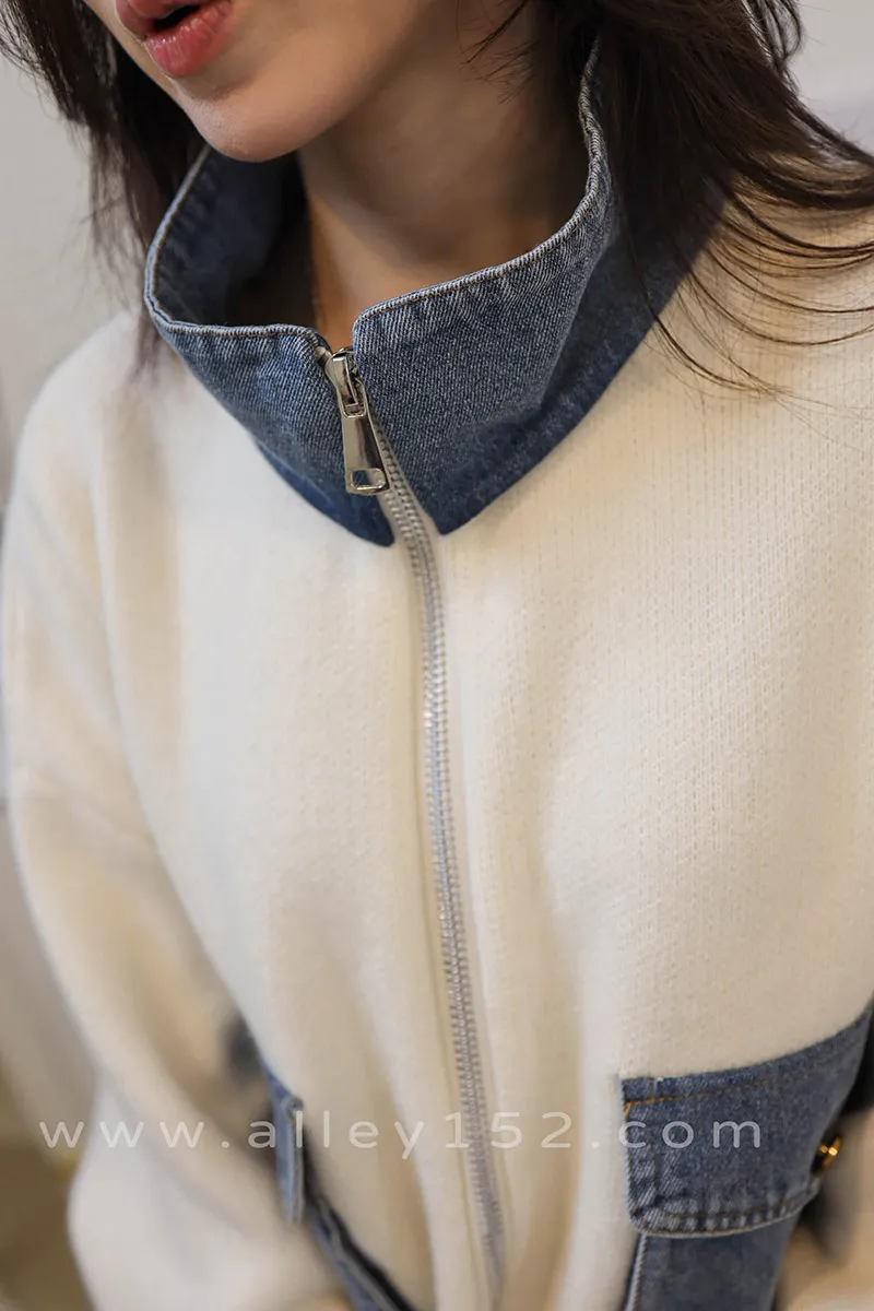將拉鍊拉到胸口,它就變成一個漂亮的拚接翻領