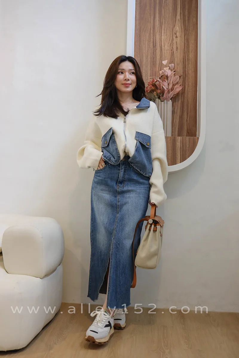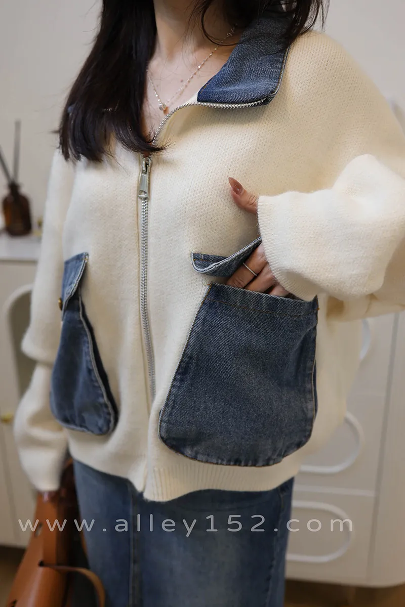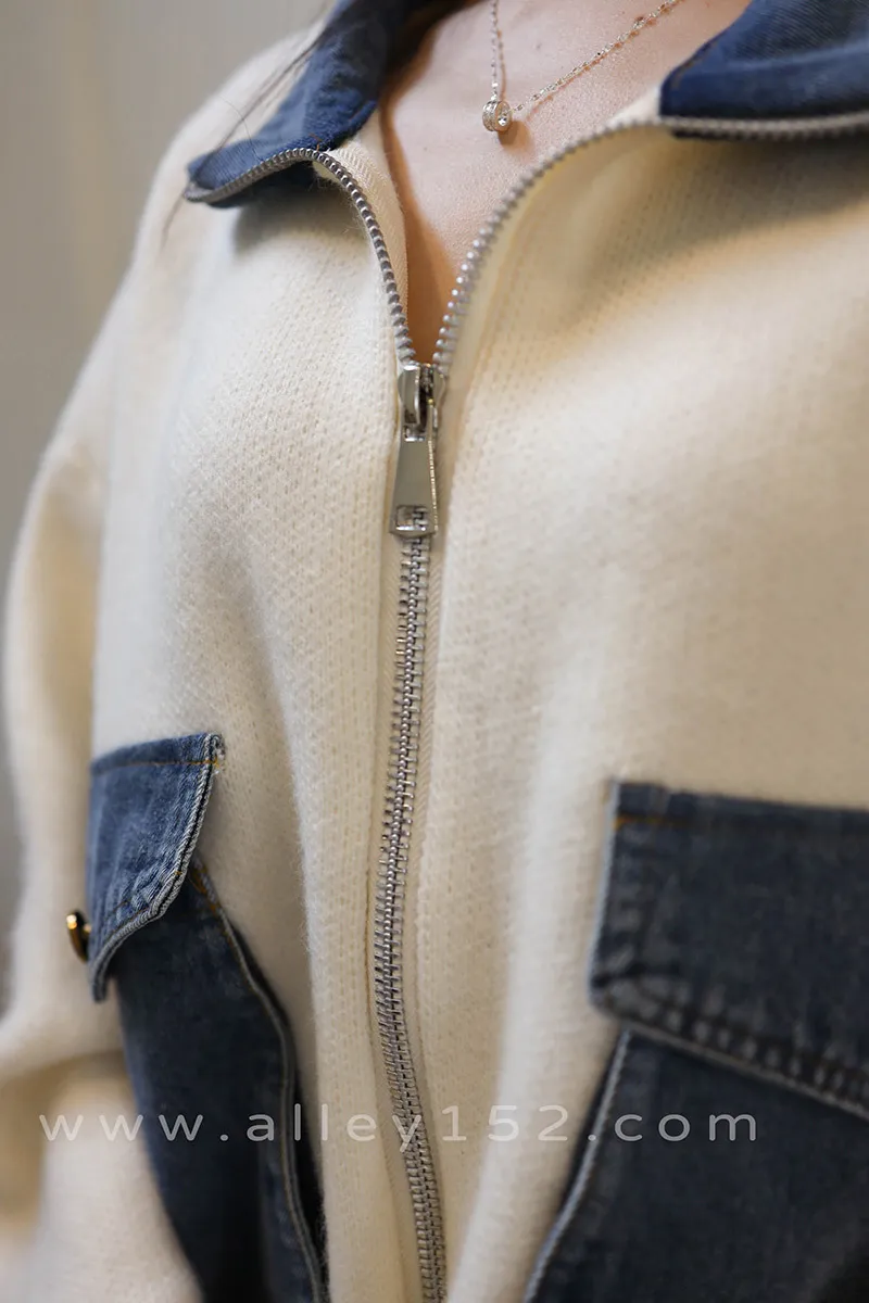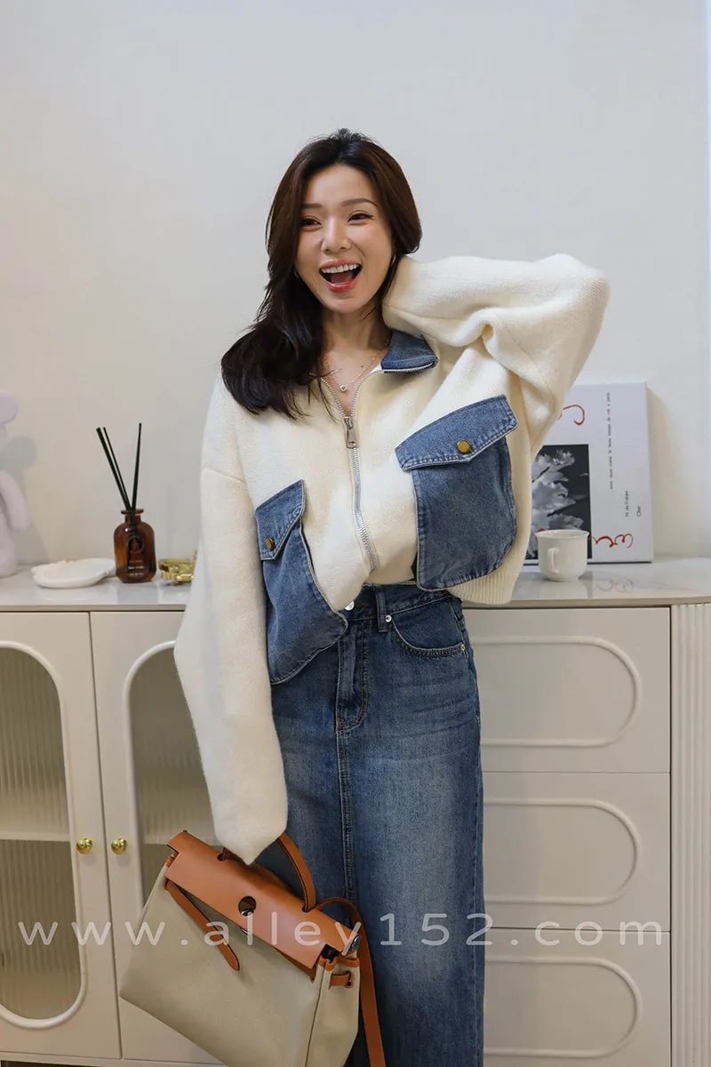 將拉鍊拉到胸口,它就變成一個漂亮的拚接翻領