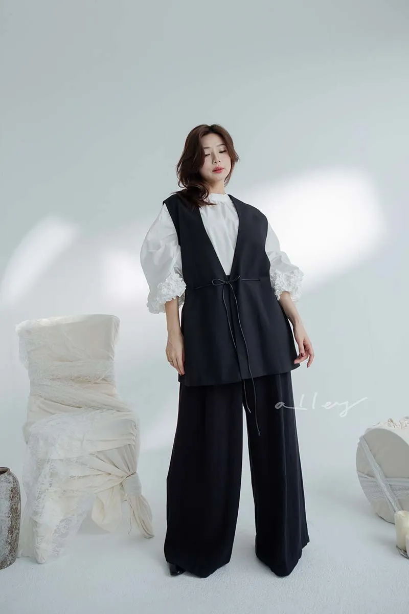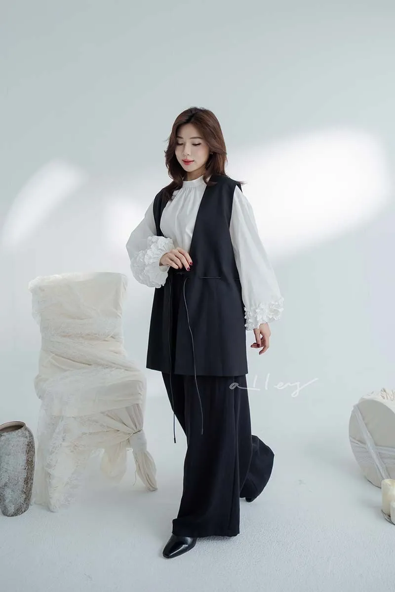 正韓 無釦腰綁繩西裝背心