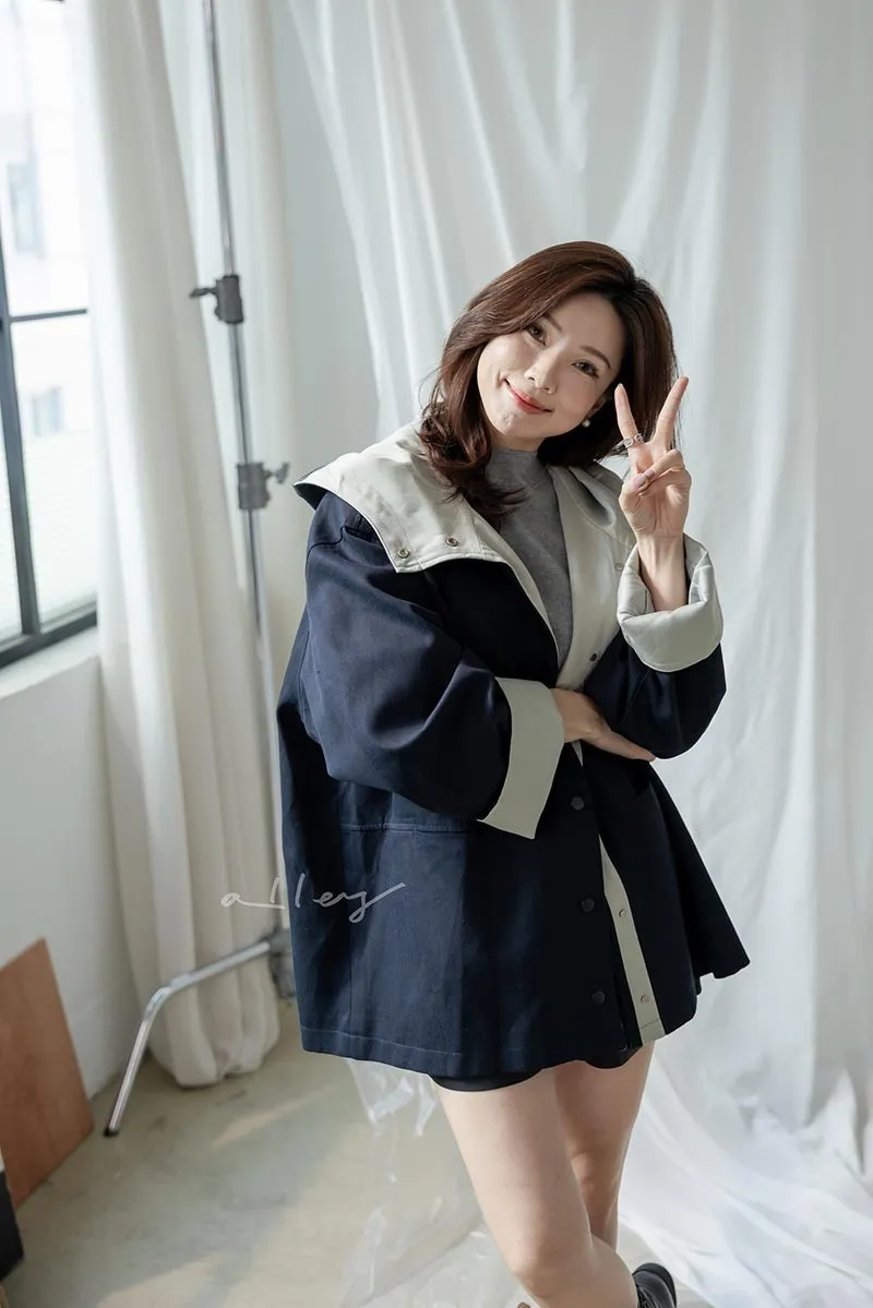 整件外套就變得像是有撞色設計一樣