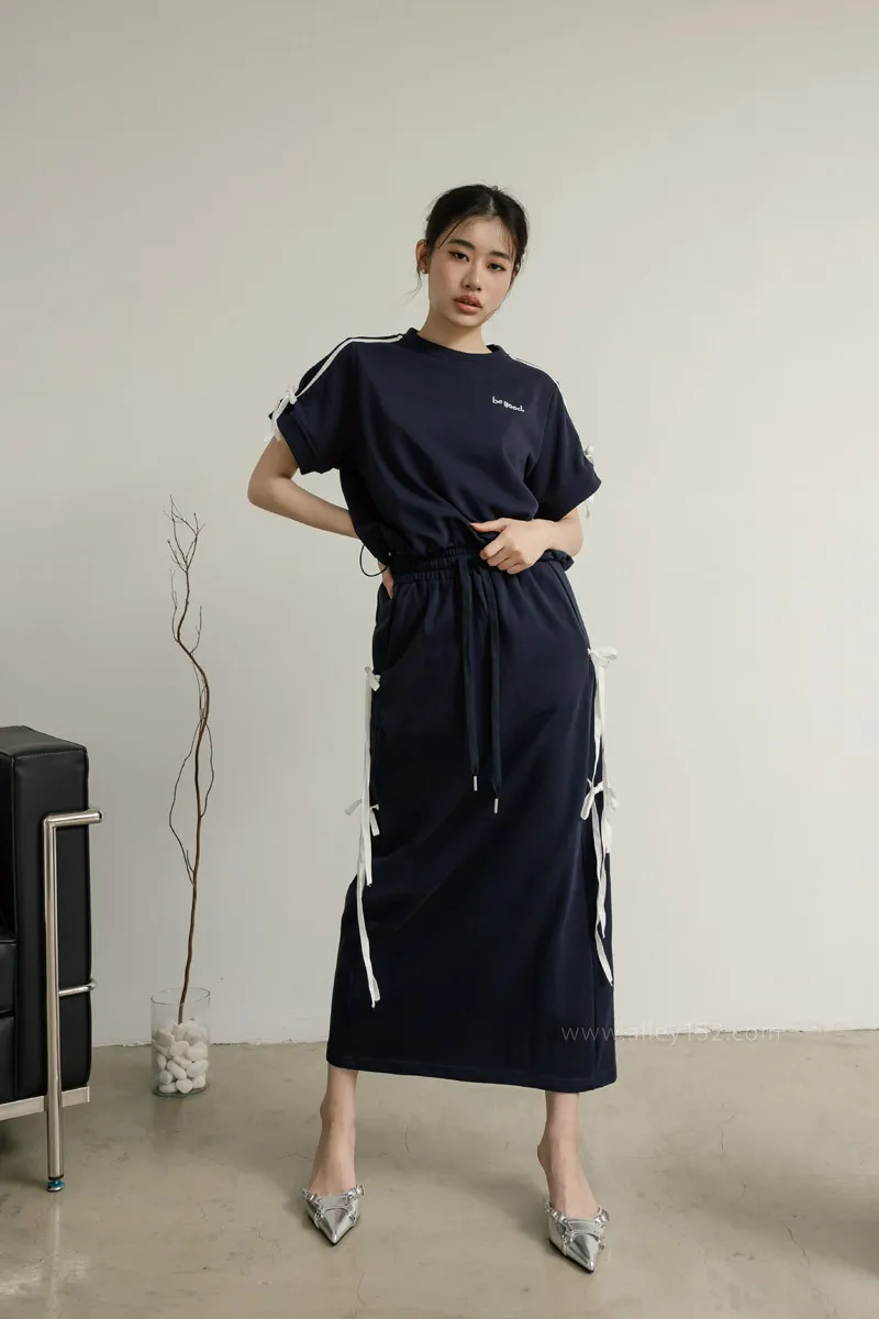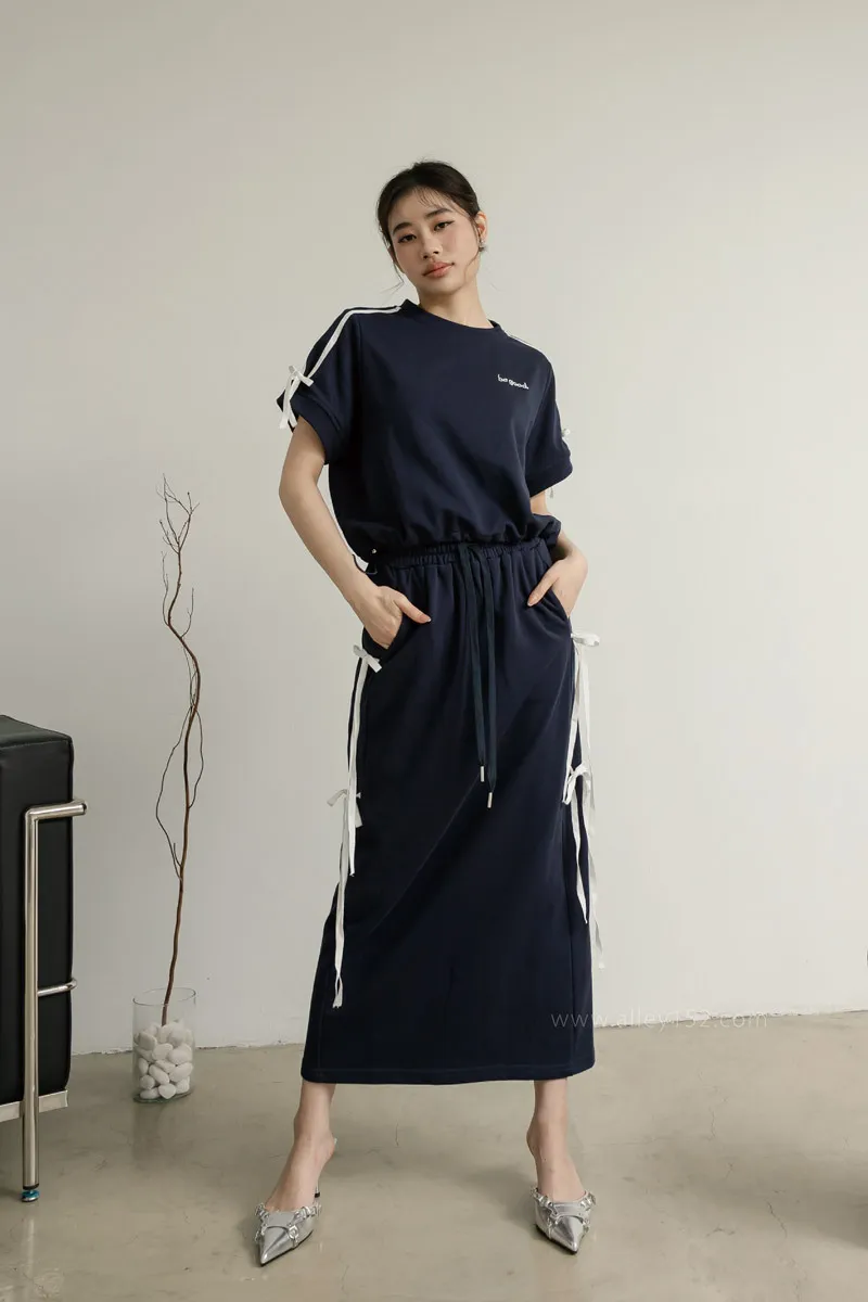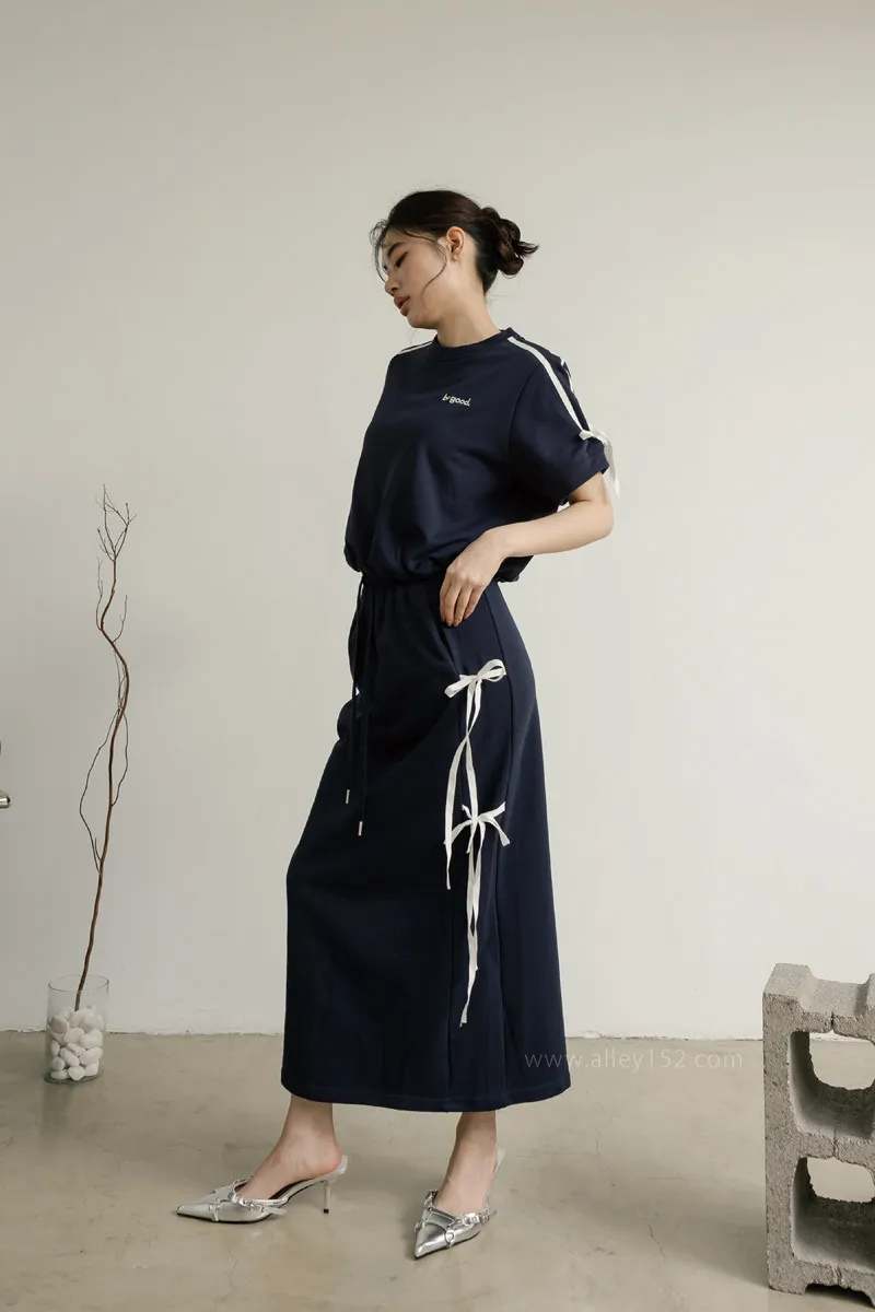 'ph7oebe'正韓be good側綁蝴蝶結帶休閒短袖長裙套裝