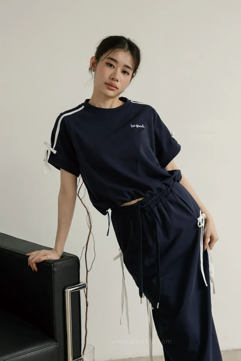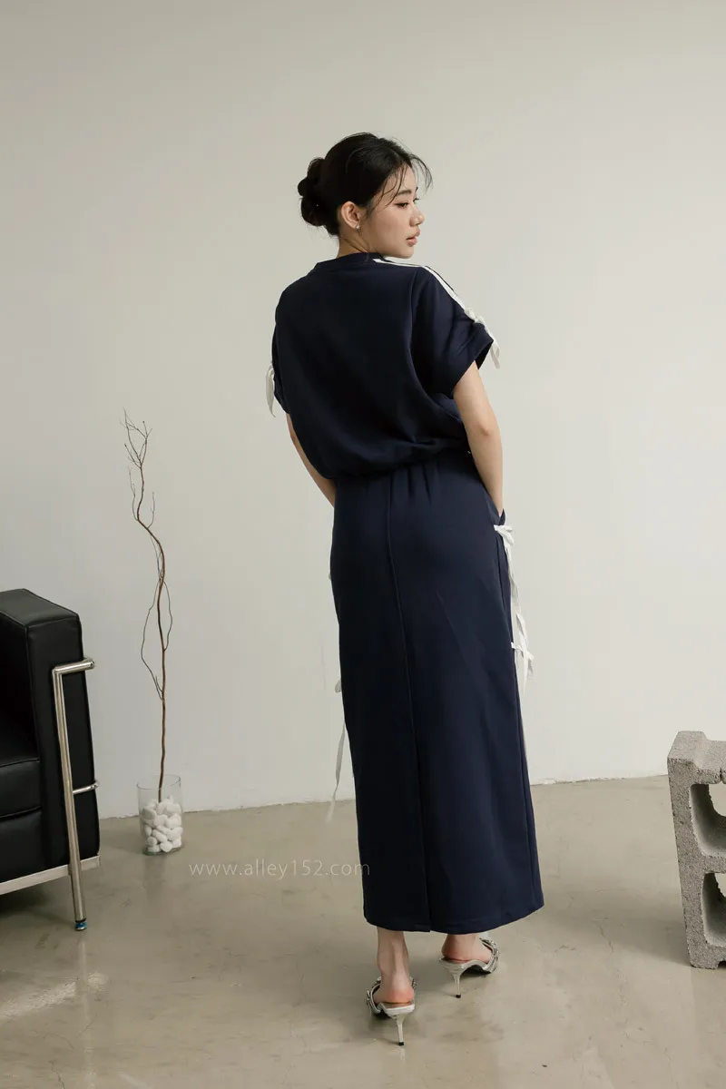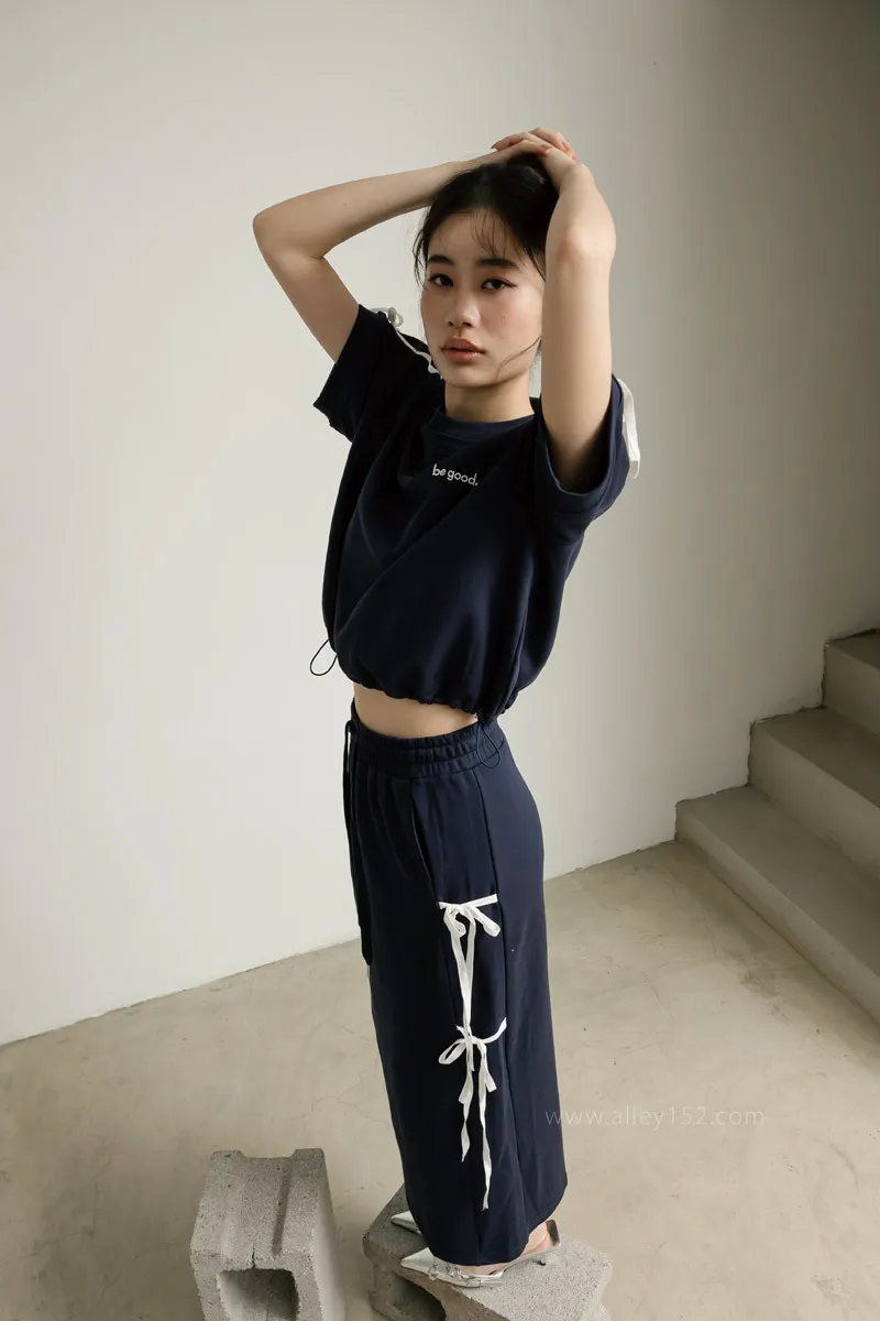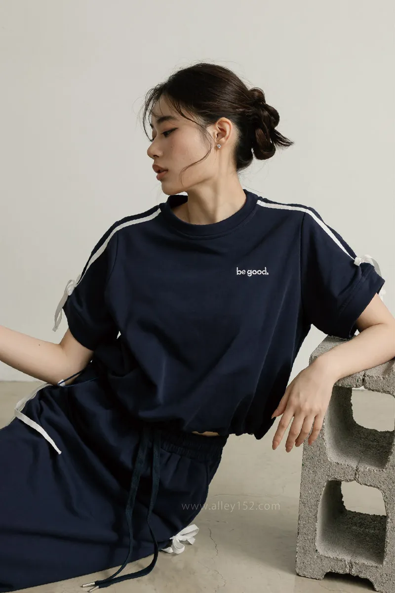 'ph7oebe'正韓be good側綁蝴蝶結帶休閒短袖長裙套裝