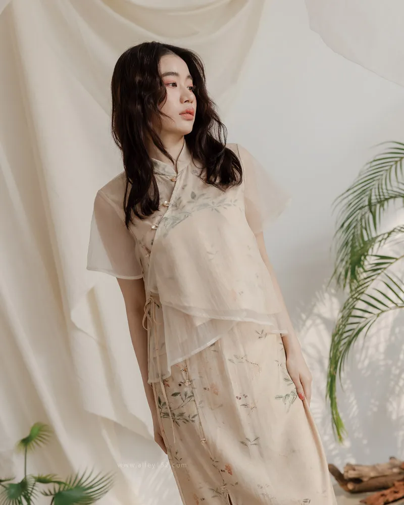 上衣還有多做一層薄紗,搭配低飽和的色調