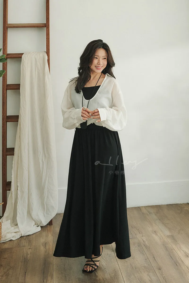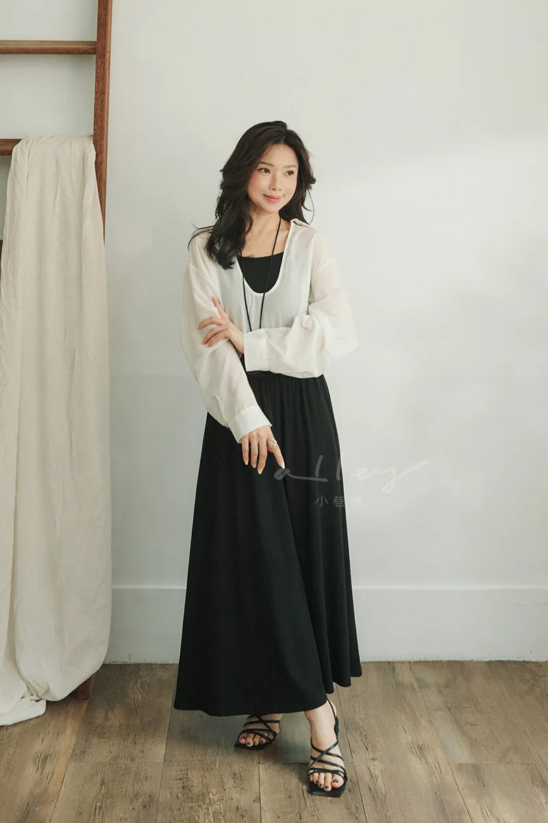 背心傘裙:38%人造再生纖維、28.5%棉、28.5壓克力纖維、5%彈性纖維