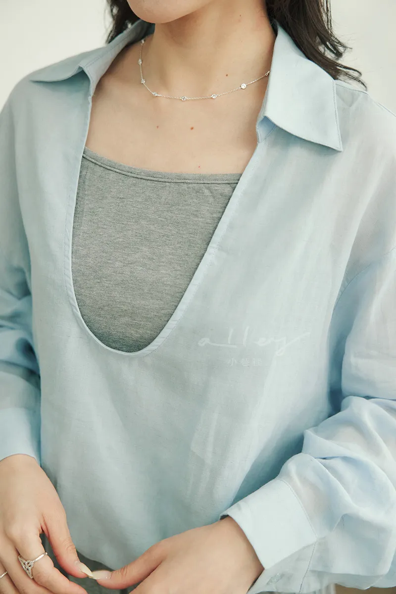 3️⃣大U領襯衫鬆軟輕透還防曬!
