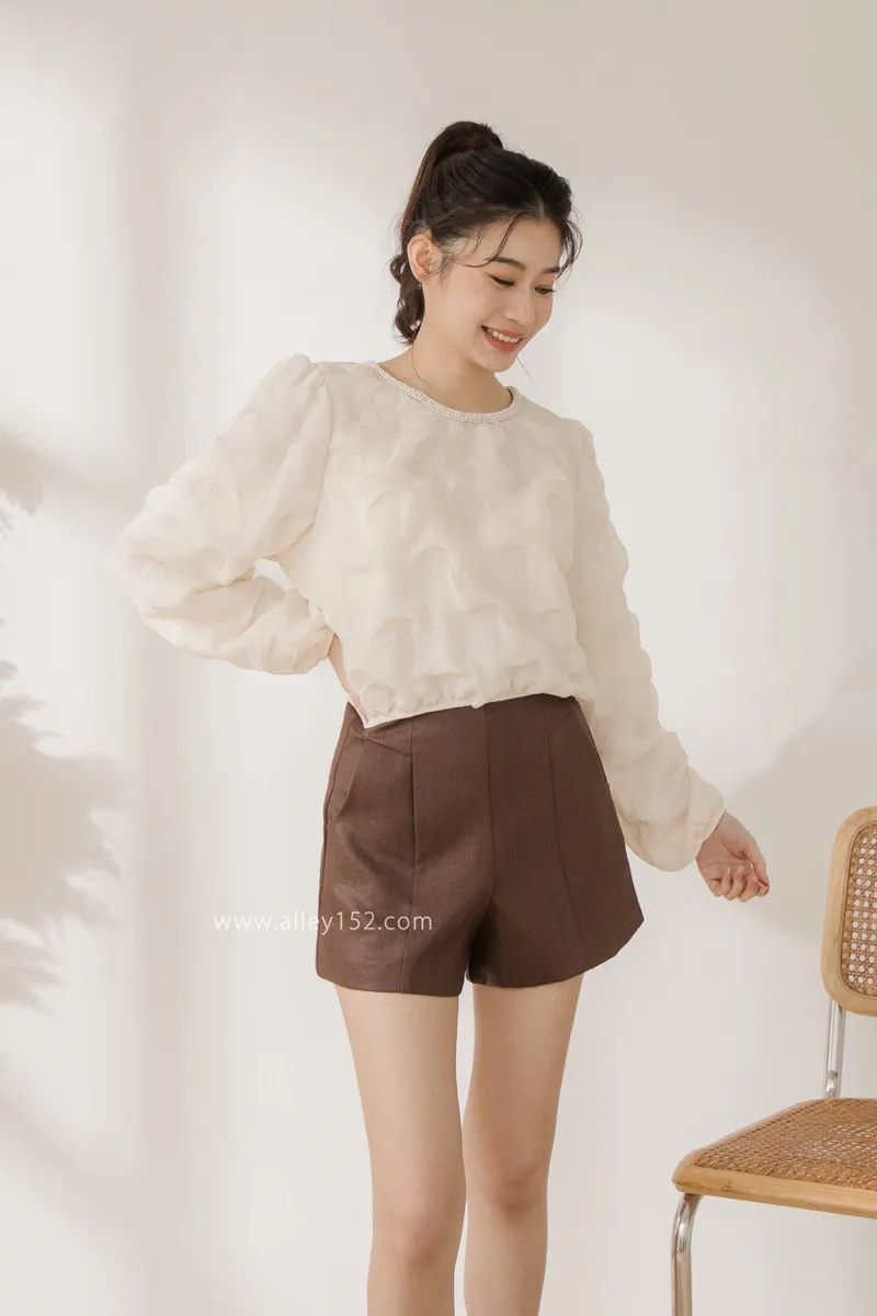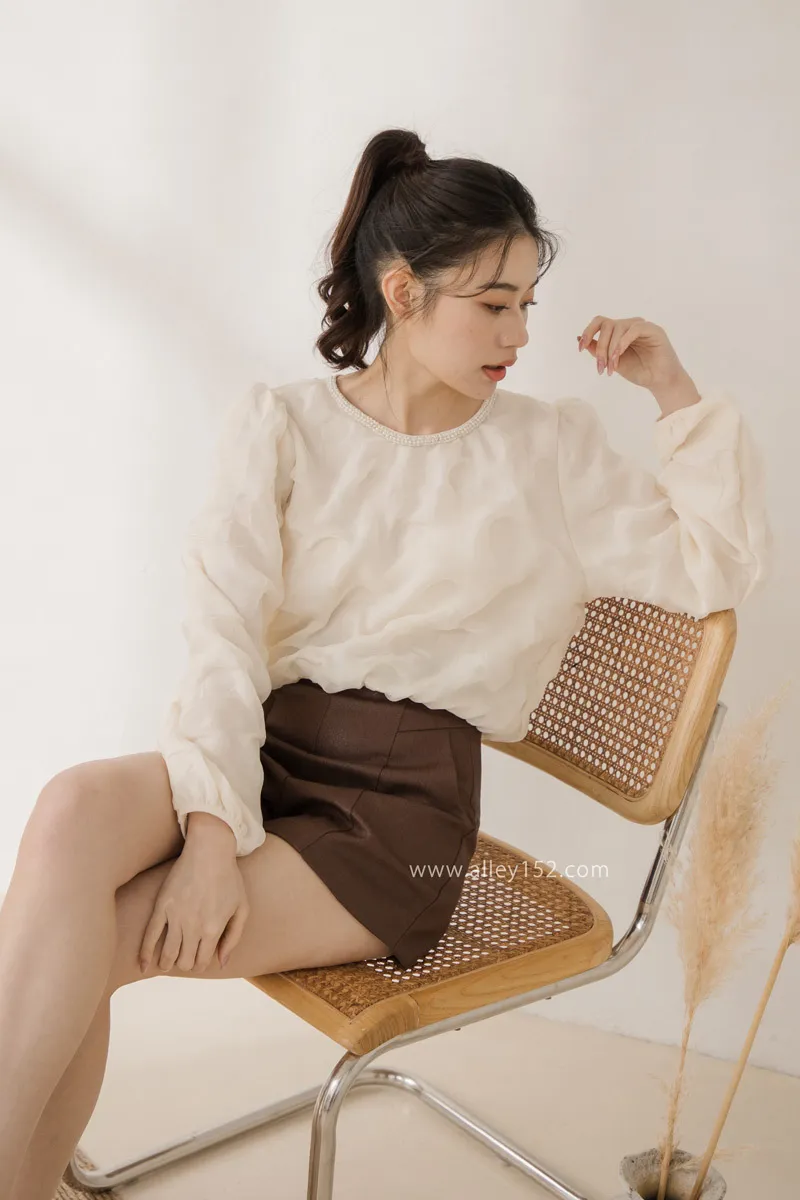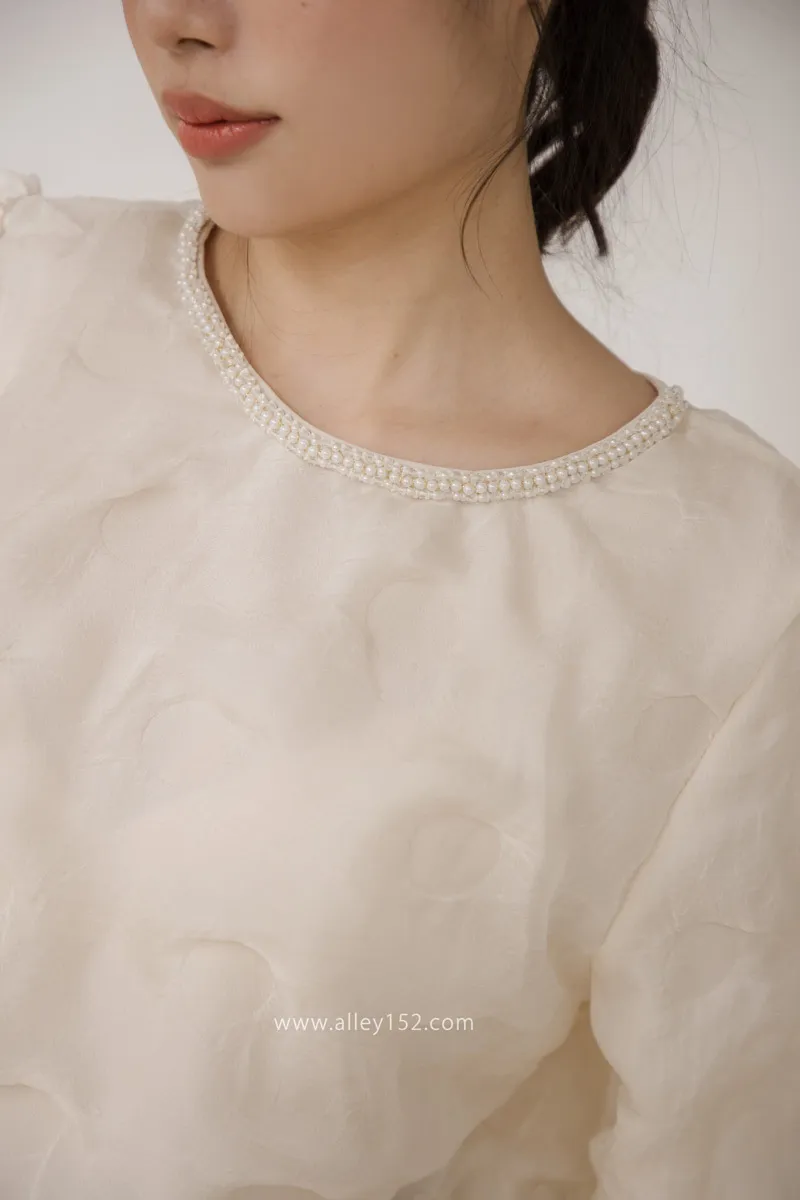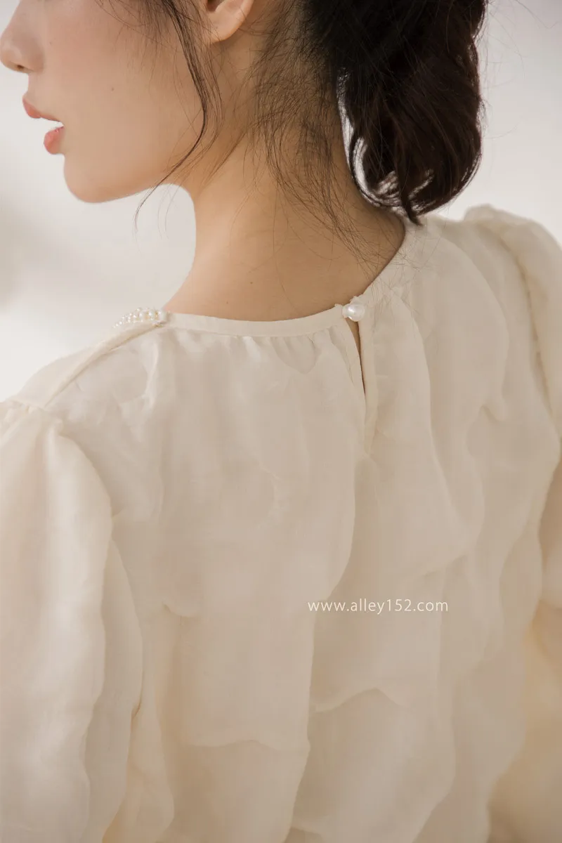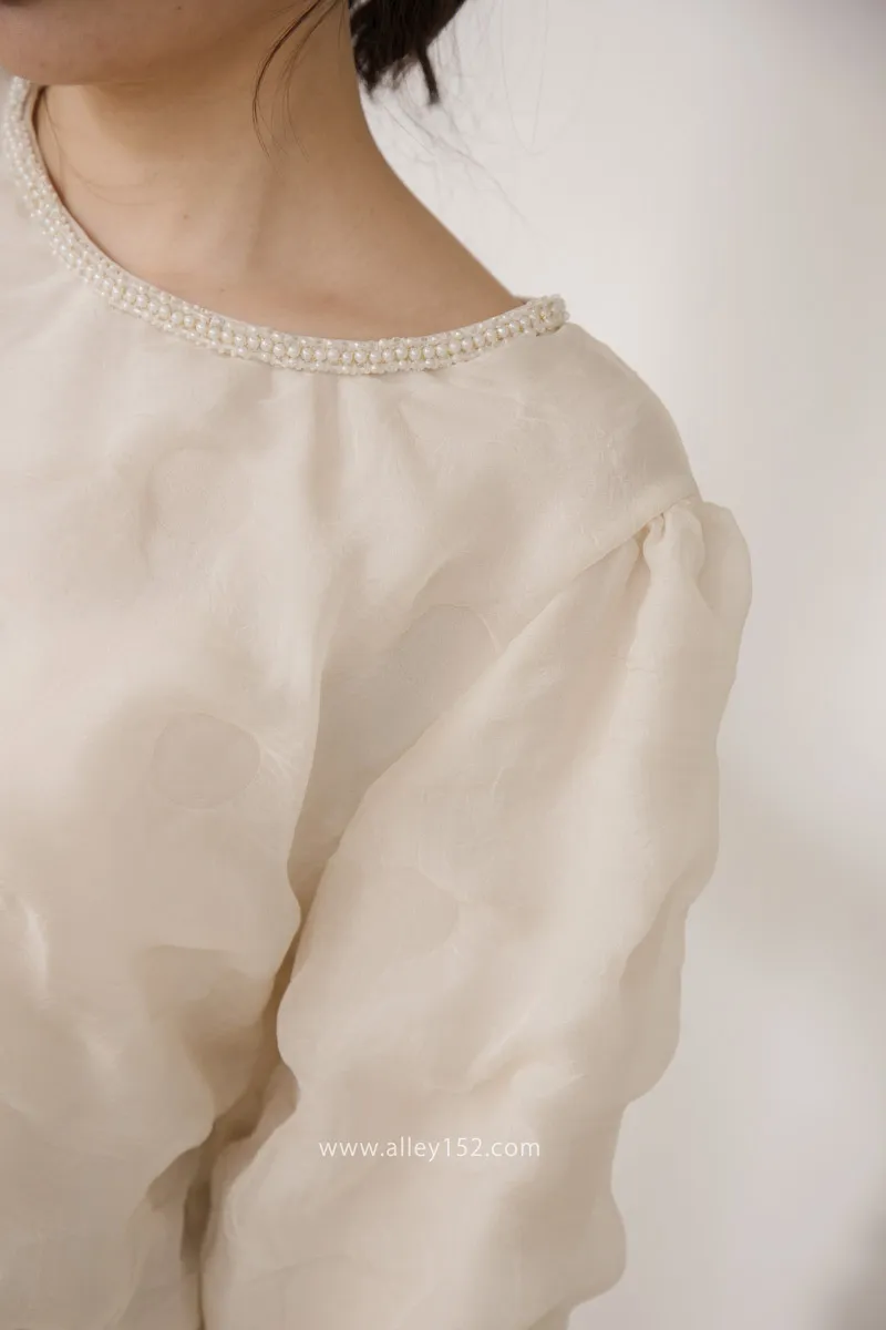- 咬一口棉花糖 圓點紡紗鑽領雪紡衣/杏 -
