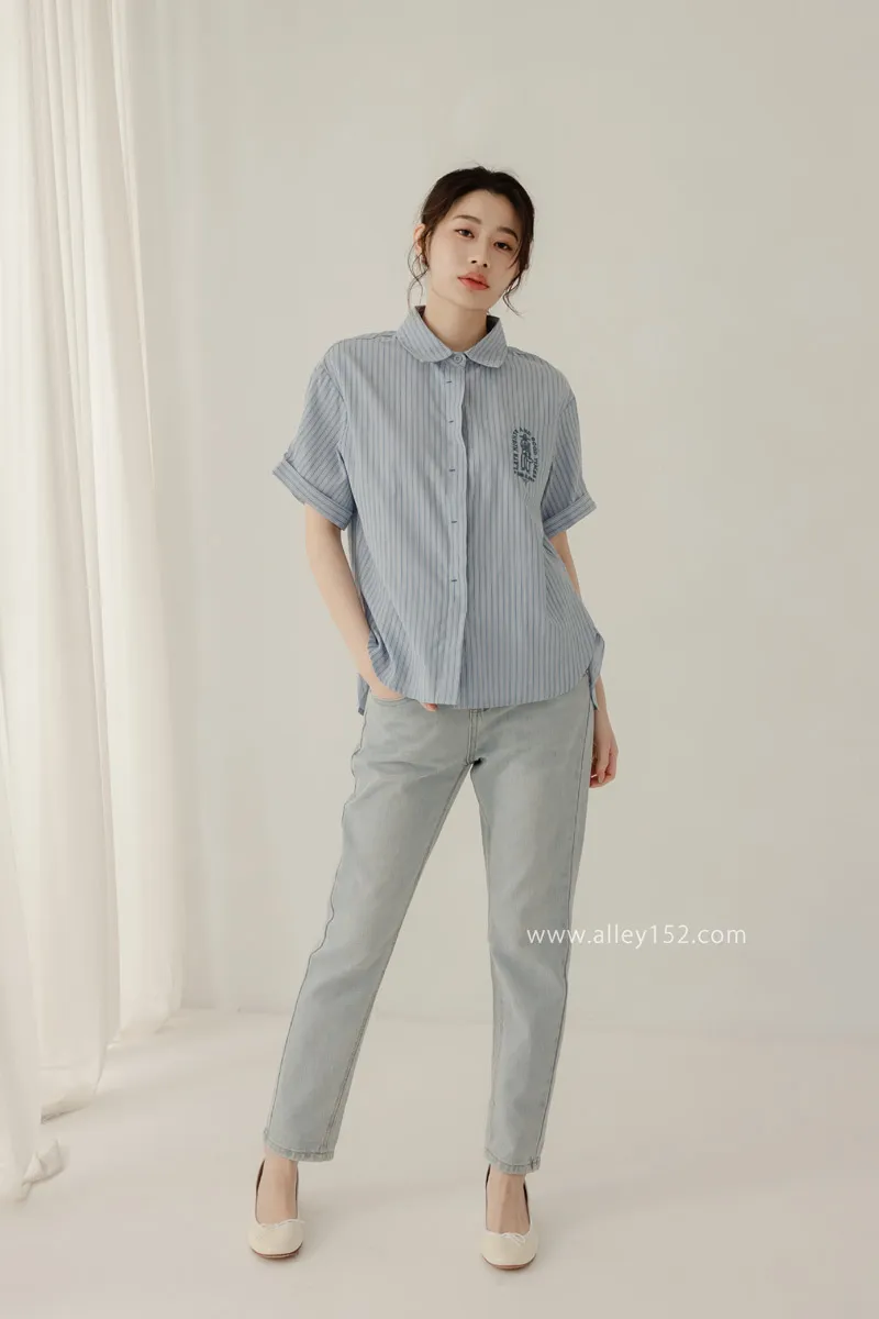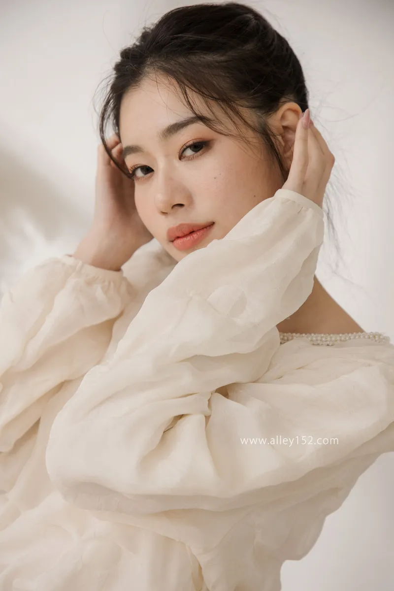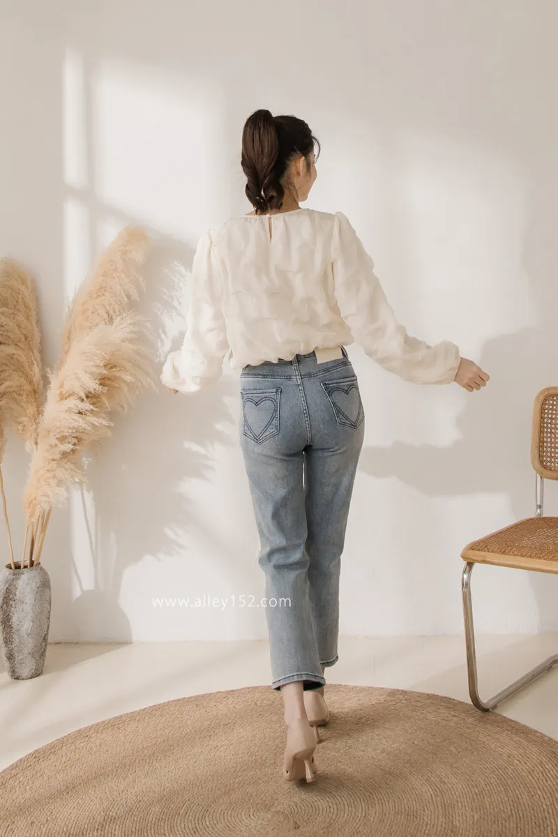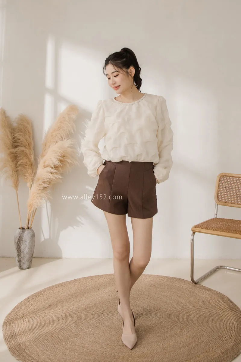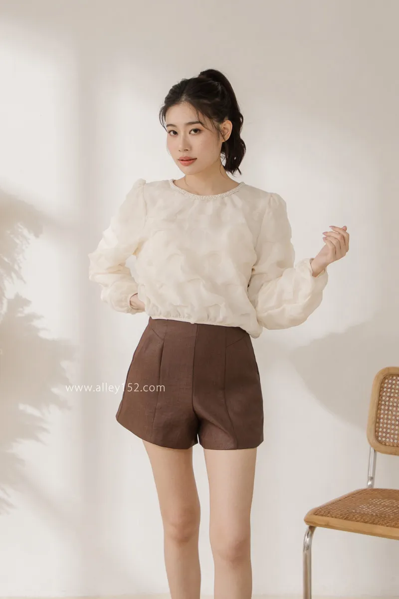- 咬一口棉花糖 圓點紡紗鑽領雪紡衣/杏 -