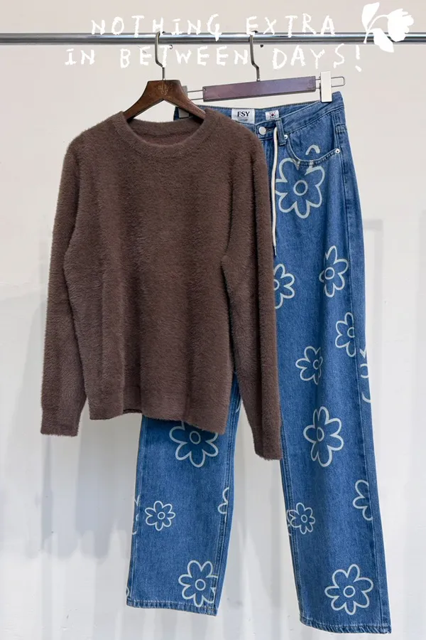 - 圓圓圓圓圓領仿水貂毛毛衣/紅咖 -