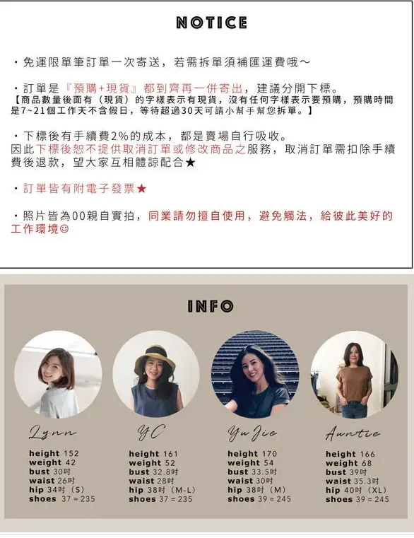 .商品盡快過水洗滌,勿浸泡,使用洗衣袋,避免太陽直曬,衣服本屬消耗品,每一年每一季都需要淘汰換新,溫柔對待可以拉長衣服壽命唷~