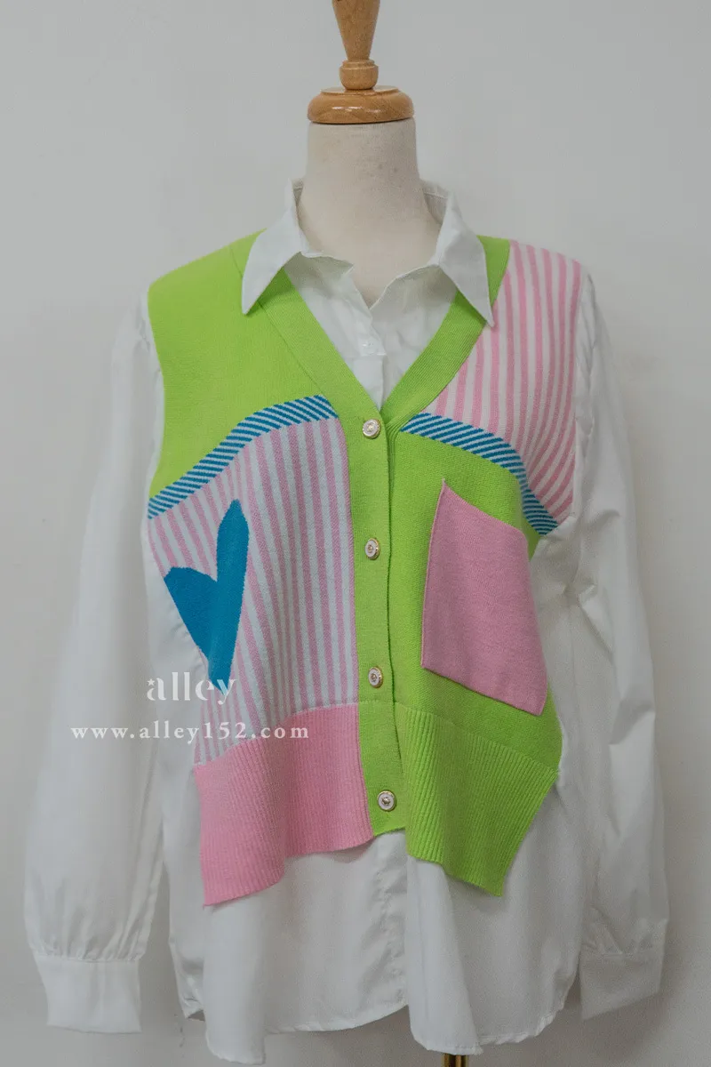 ✔️一邊領口大大的口袋,對應到對面的是不同色的大愛心,趣味滿滿