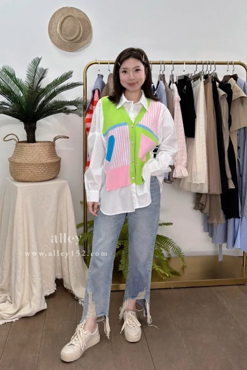 ✔️內層襯衫是一般小釦子,外面拼接是看起來很有質感的帶金邊大釦