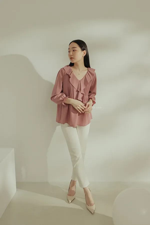 荷葉V領設計能很好的修飾臉型