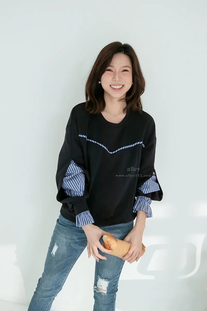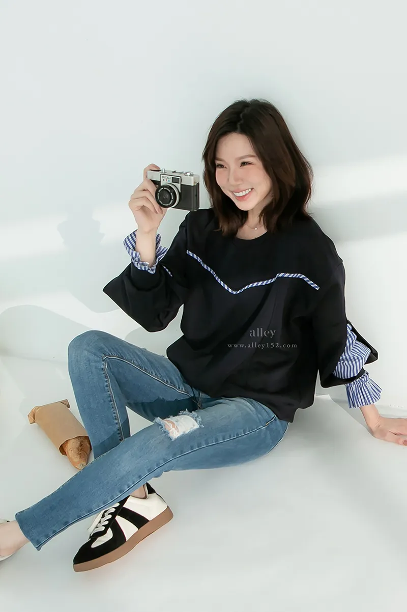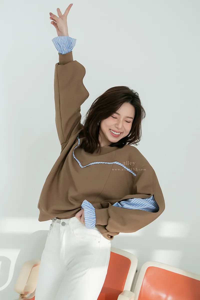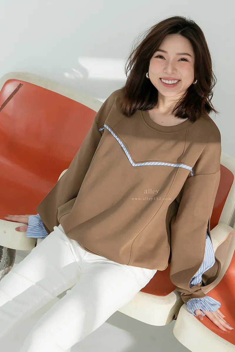 整體是有彈性的衛衣,但它有做假兩件式在雙手的部分