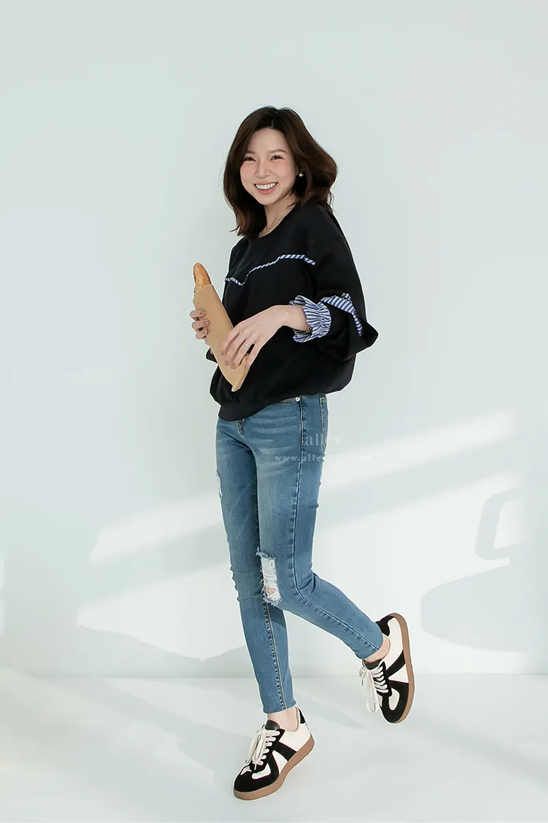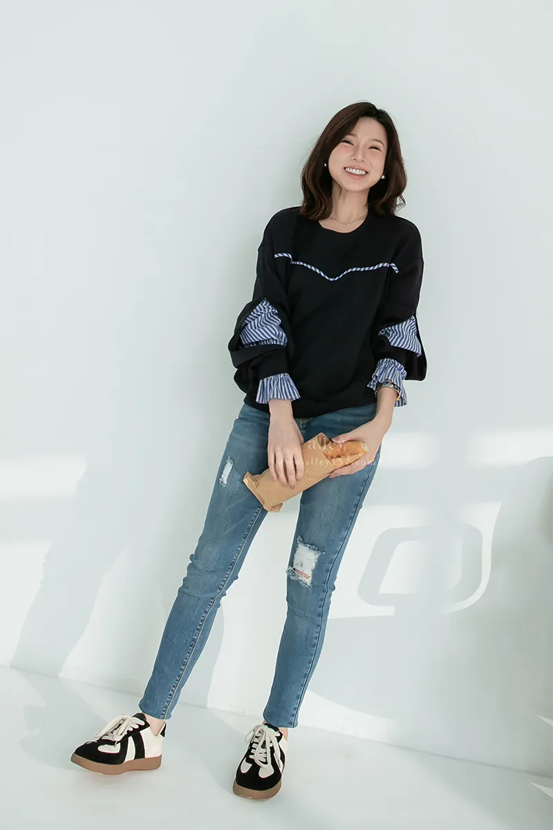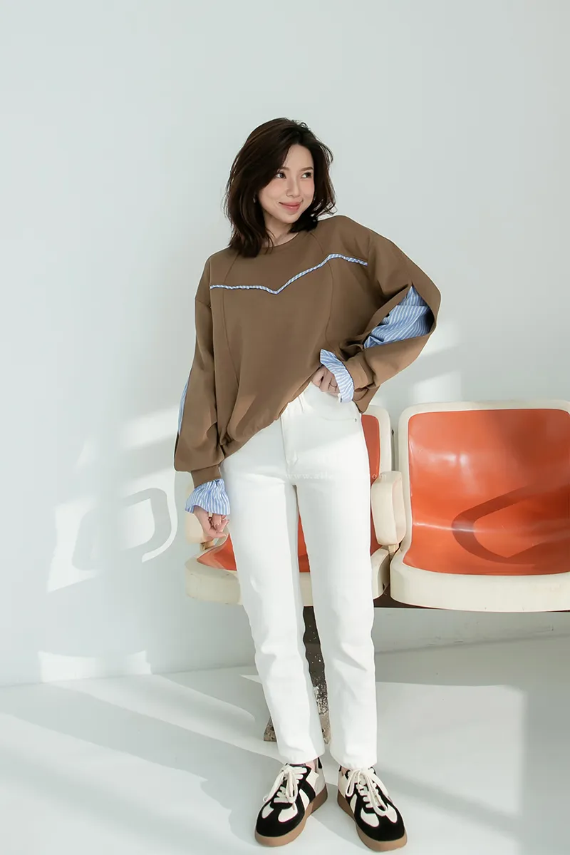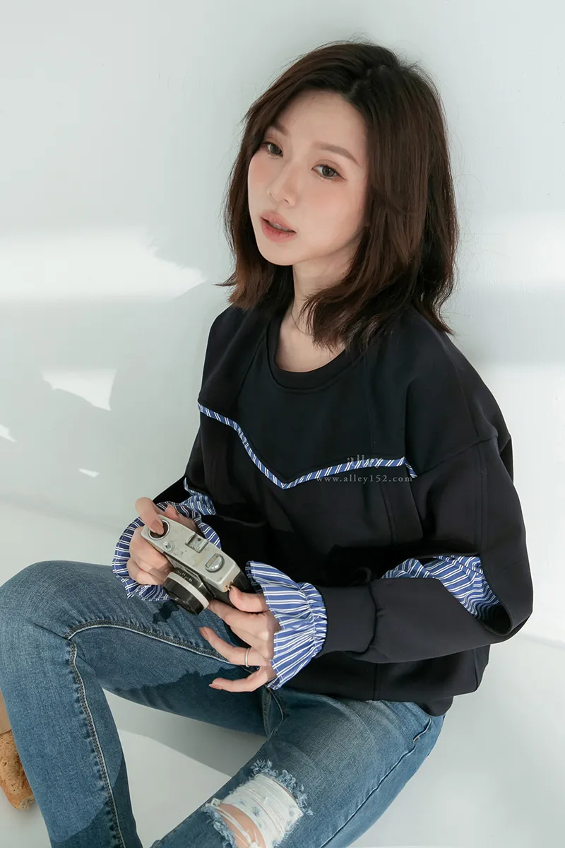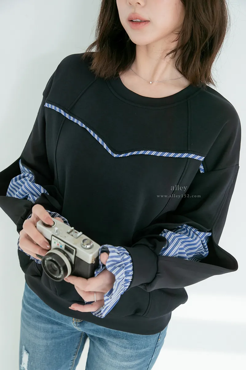 整體是有彈性的衛衣,但它有做假兩件式在雙手的部分