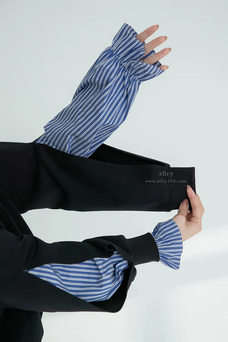 它手的部分是做假兩件,手臂處直接開衩可以看到裡面的襯衫