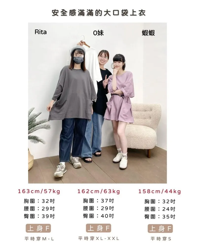 名字 身高 體重 胸圍 腰圍 臀圍 平常穿 此款穿 筱恬 162cm 45kg 30吋 24吋 36吋 S F ▪️ 親膚度:⭐⭐⭐⭐▪️ 質料:100%棉▪️ 彈性:微彈性▪️ 其他:不刺/不透/有口袋/下擺兩側微開岔 各身形穿搭