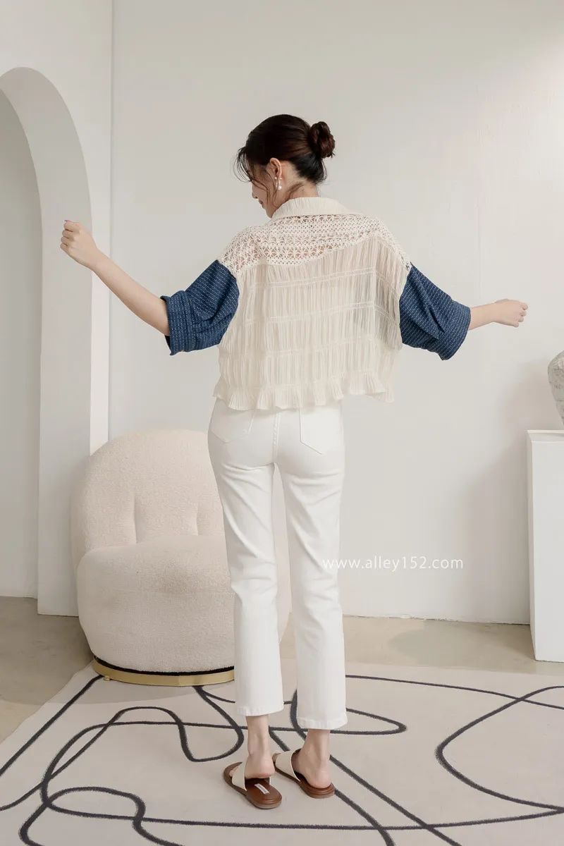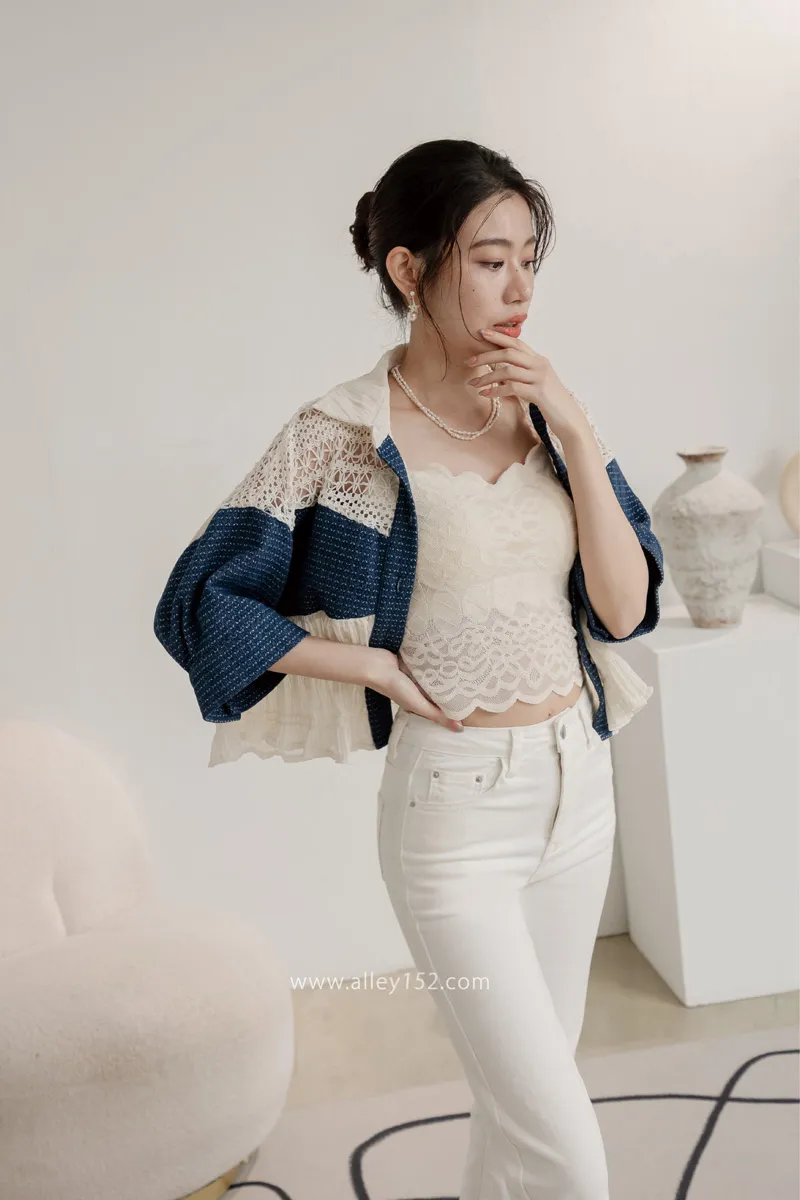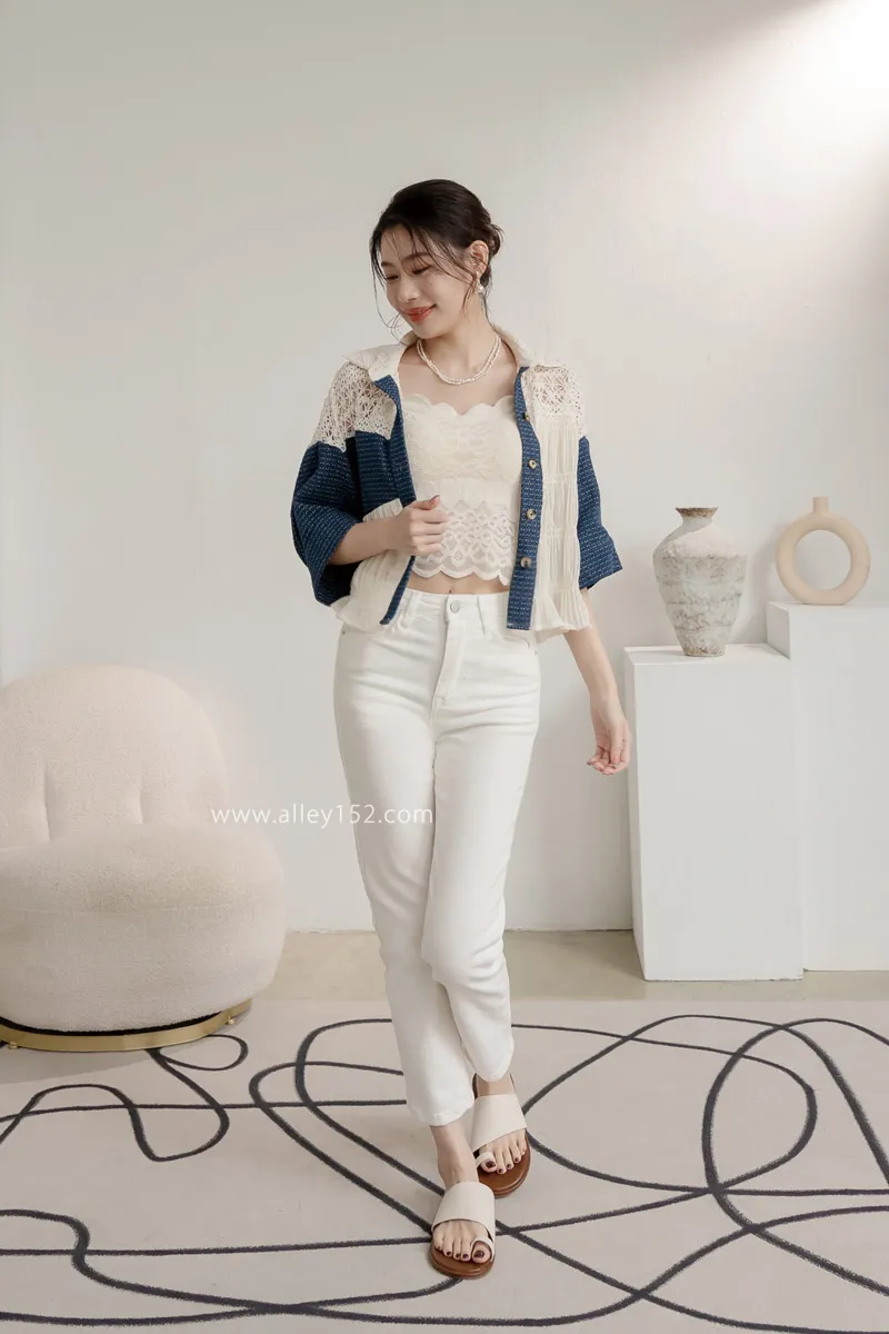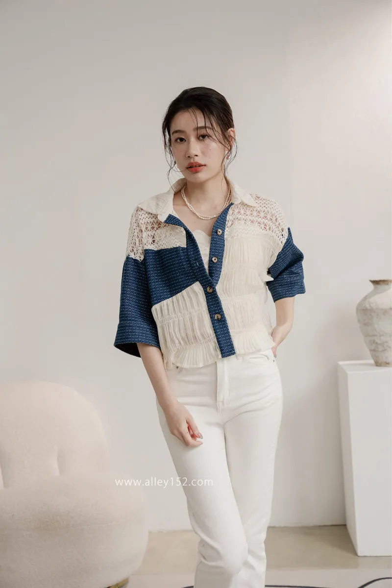 名字 身高 體重 胸圍 腰圍 臀圍 平常穿 此款穿 筱恬 162cm 45kg 30吋 24吋 36吋 S F ▪️ 親膚度:⭐⭐⭐⭐⭐▪️ 材質:牛仔拼布+緹花拼布編織▪️ 彈性:無彈性▪️ 其他:不刺/微透/無口袋