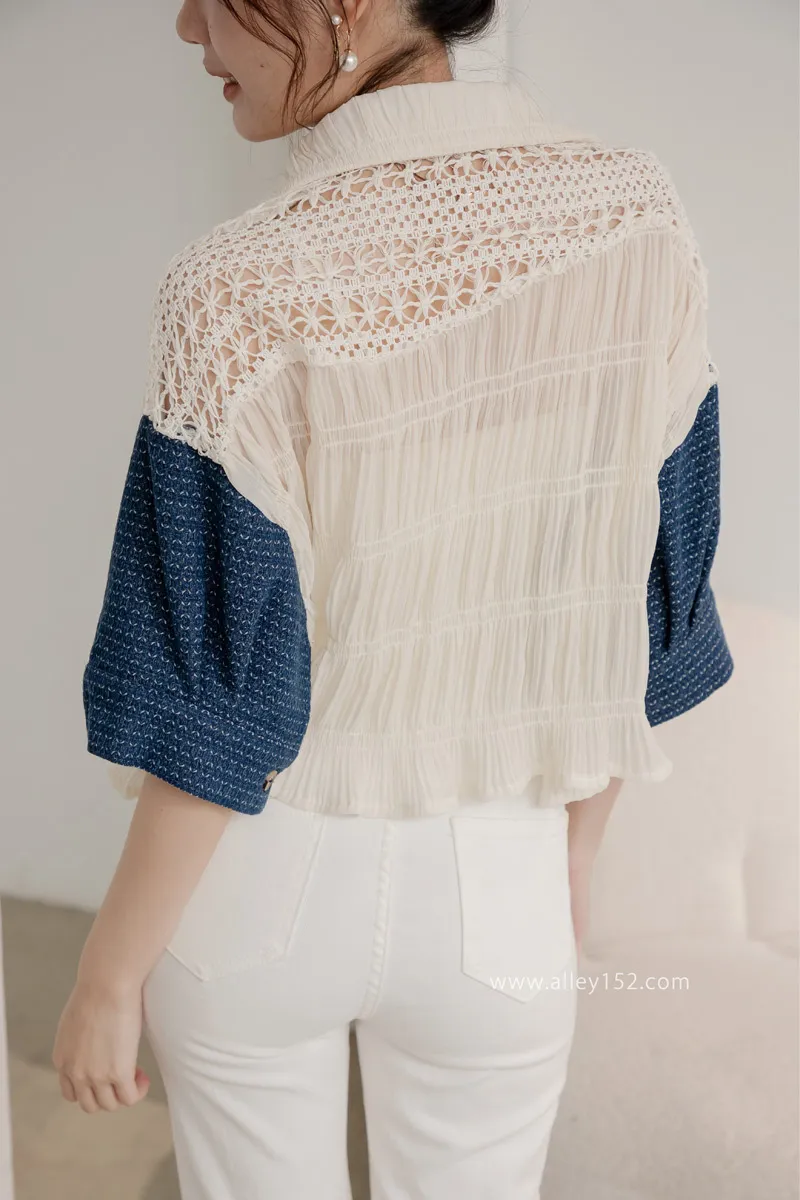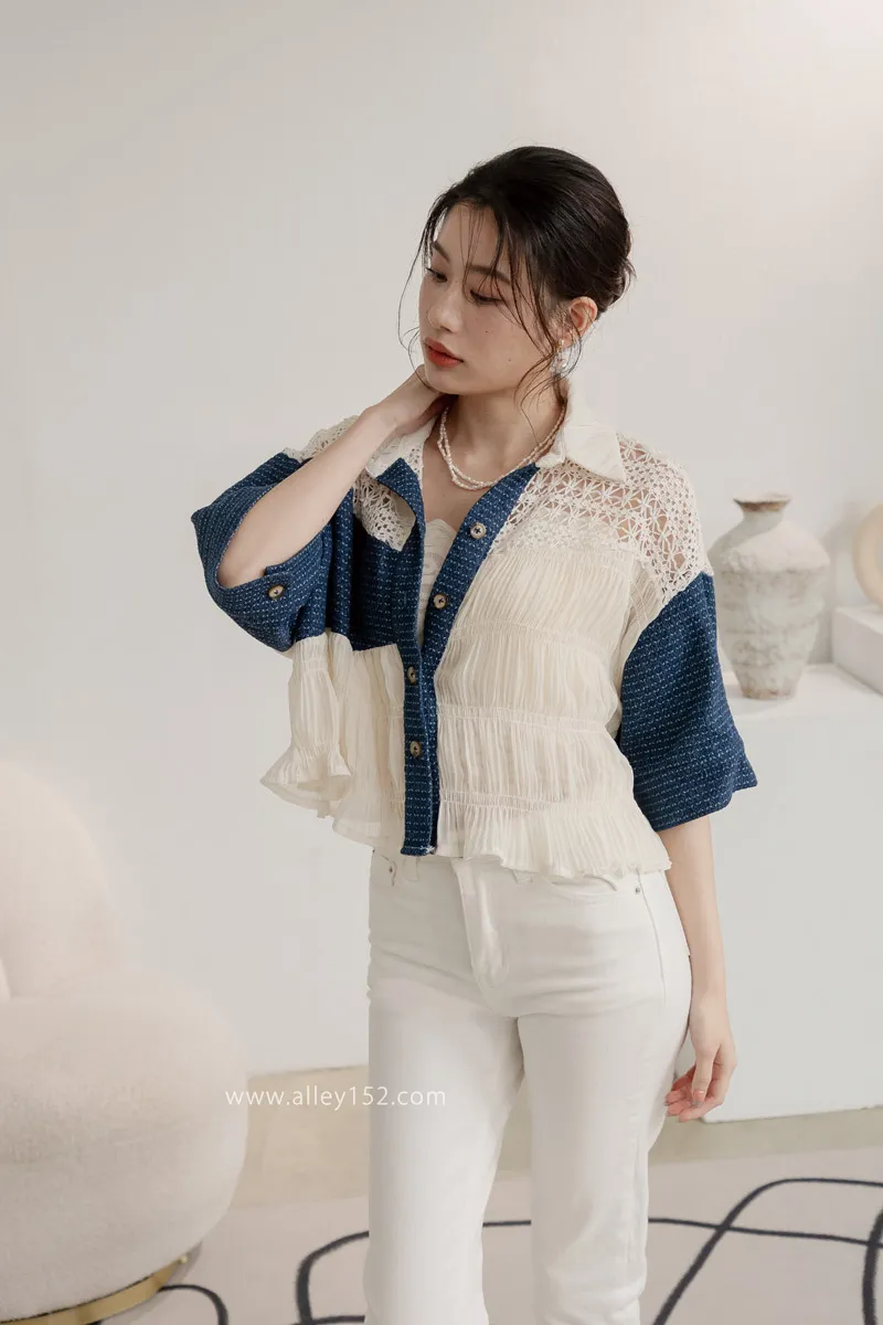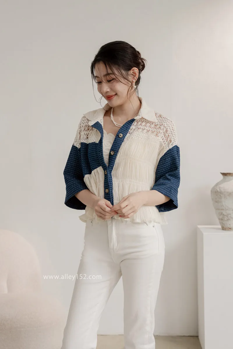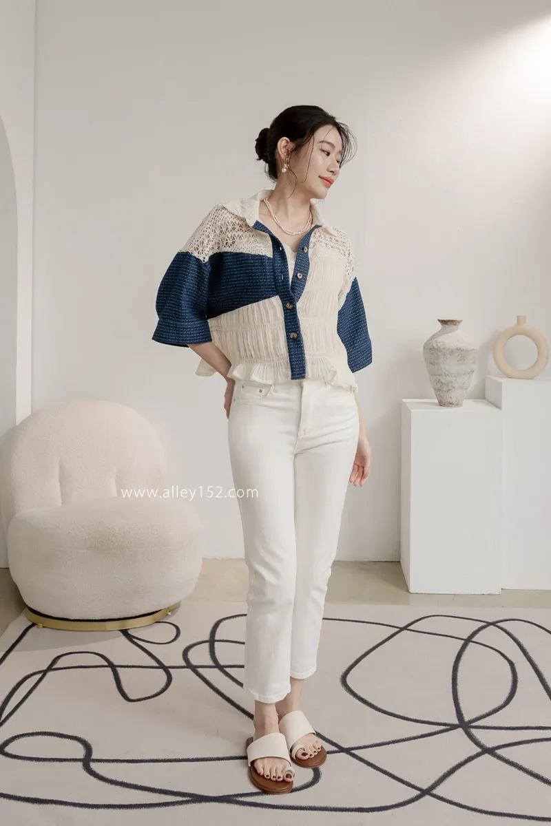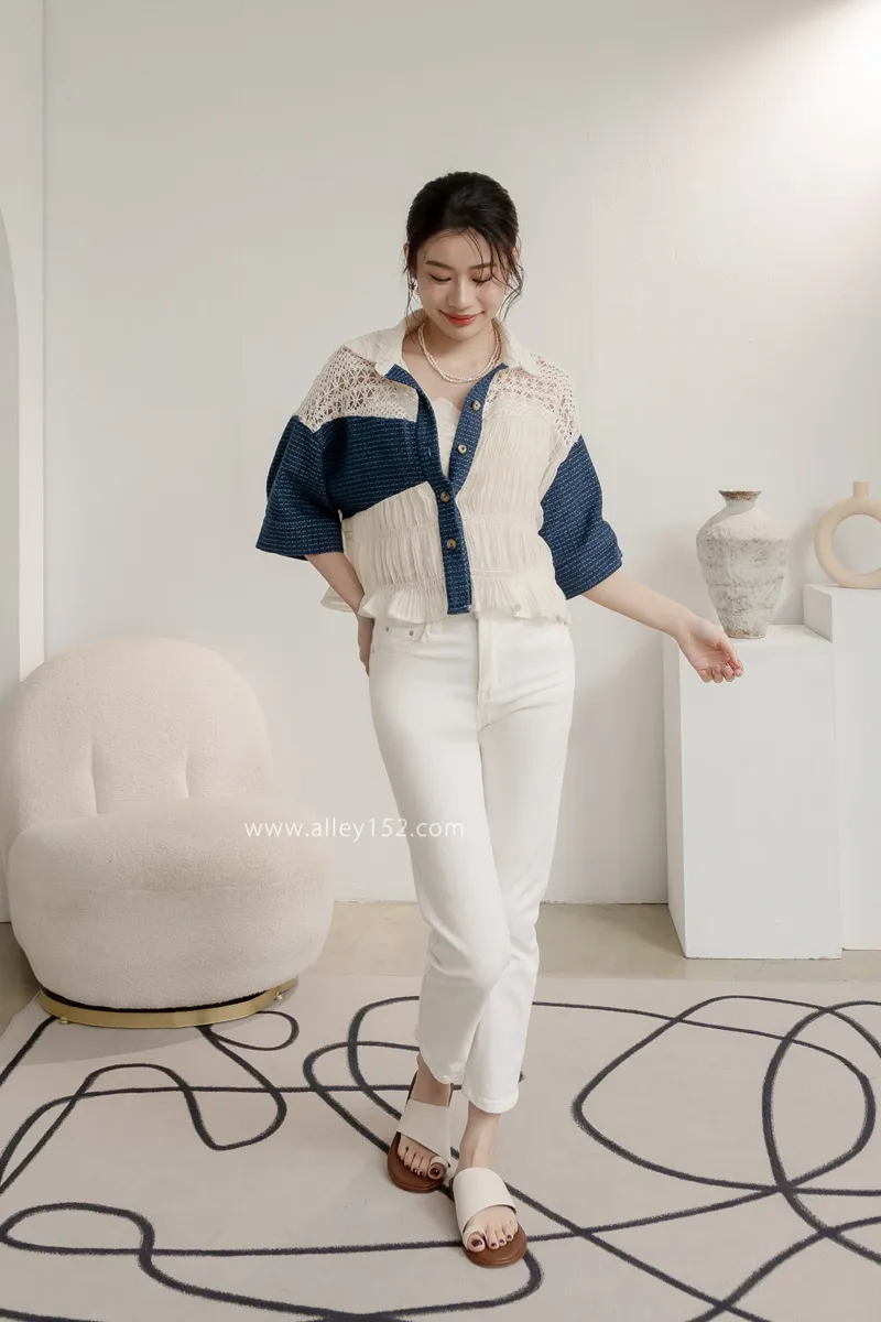 名字 身高 體重 胸圍 腰圍 臀圍 平常穿 此款穿 筱恬 162cm 45kg 30吋 24吋 36吋 S F ▪️ 親膚度:⭐⭐⭐⭐⭐▪️ 材質:牛仔拼布+緹花拼布編織▪️ 彈性:無彈性▪️ 其他:不刺/微透/無口袋