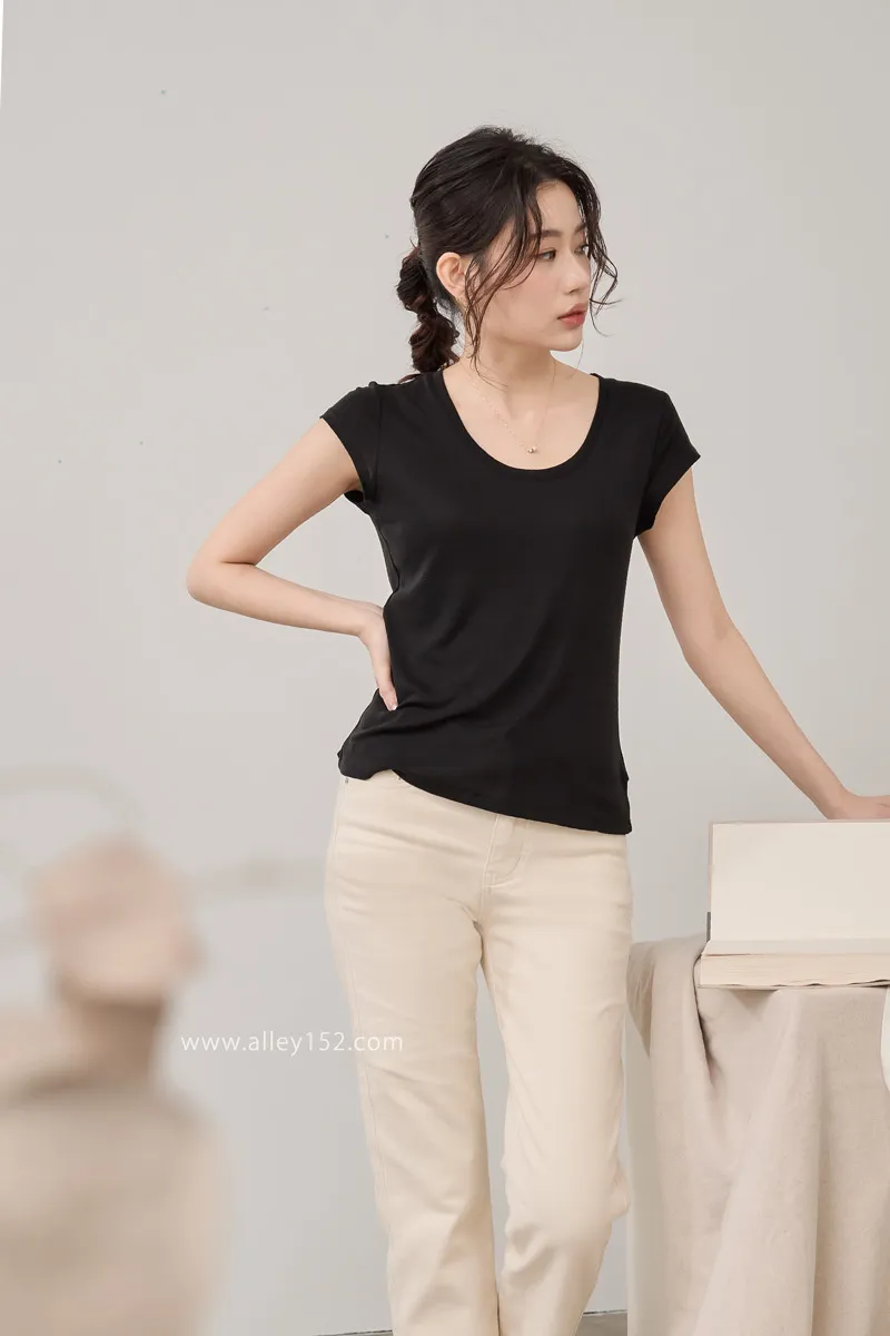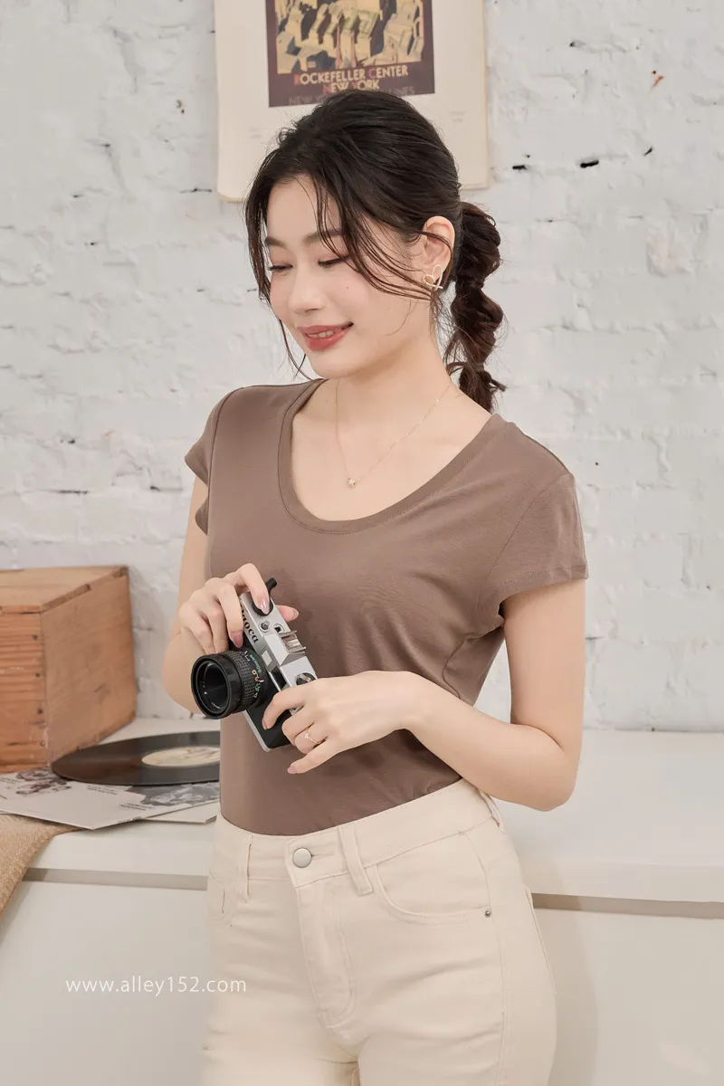 4️⃣微低的圓領露出美麗鎖骨跟一小塊肌膚