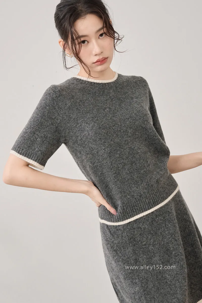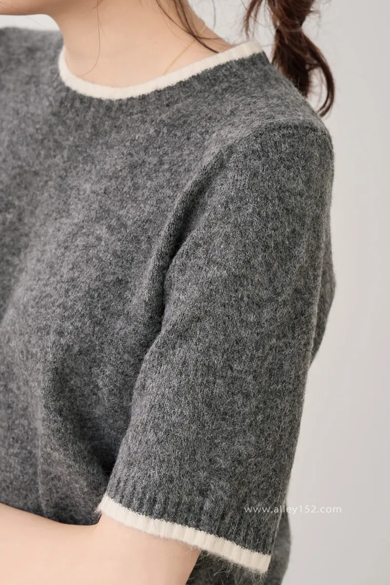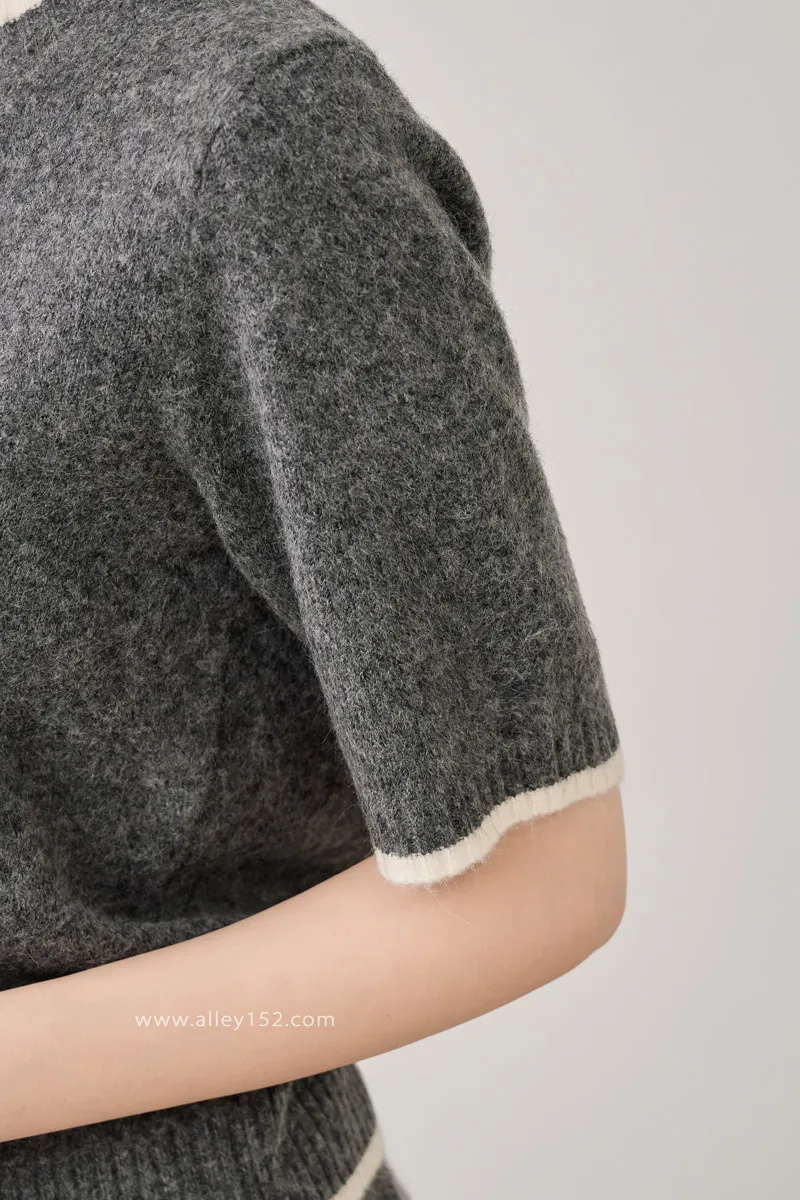 邊條撞色針織短袖上衣