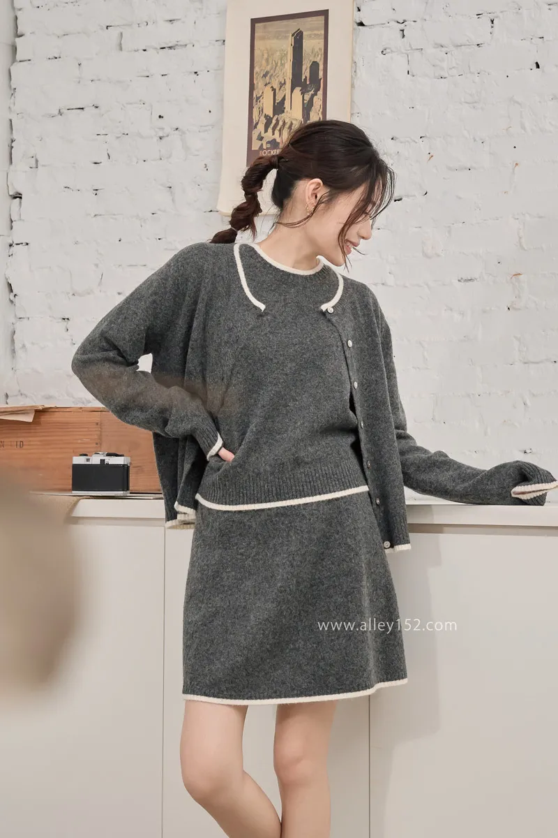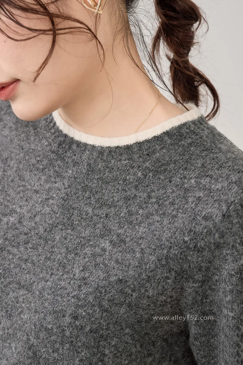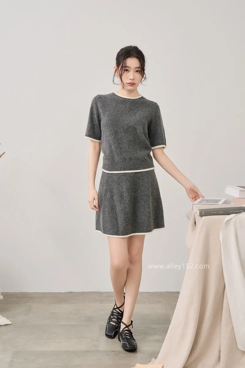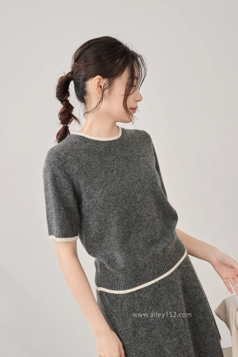 邊條撞色針織短袖上衣