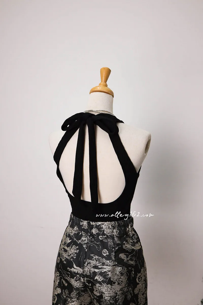 E20蝴蝶結露背針織上衣(+1商品無退換貨)