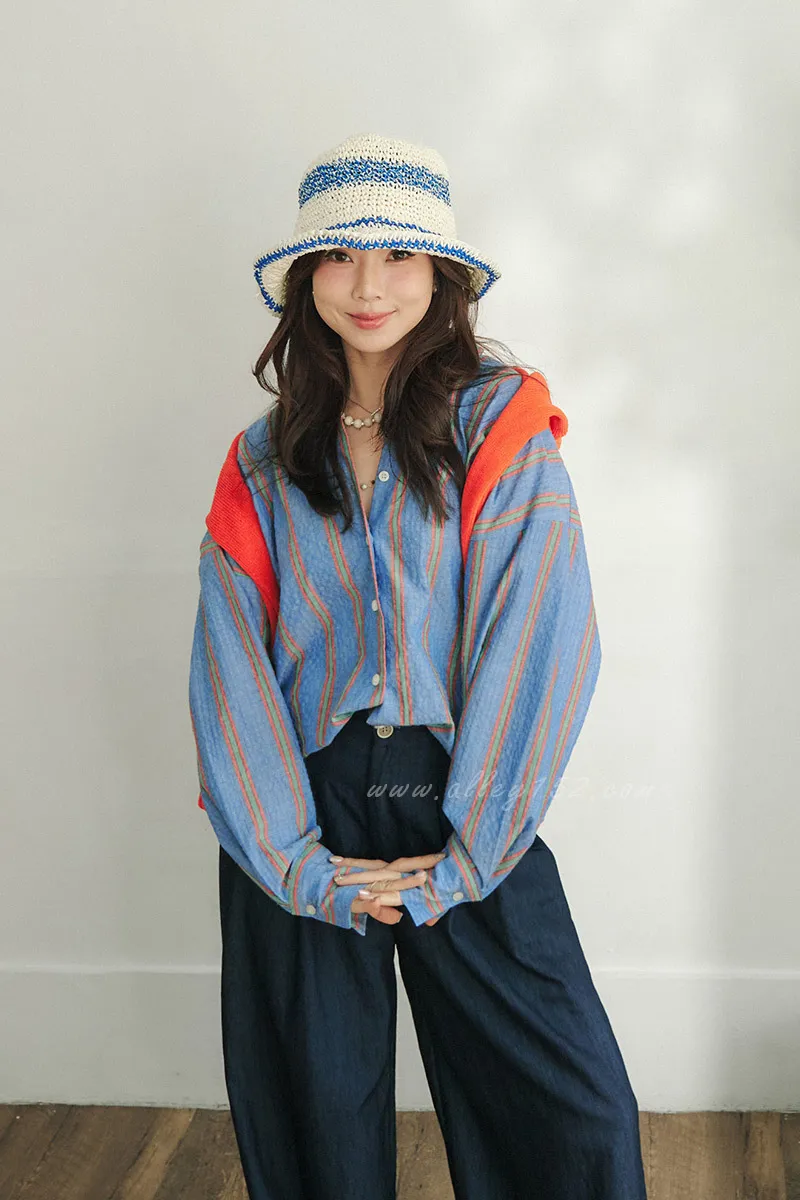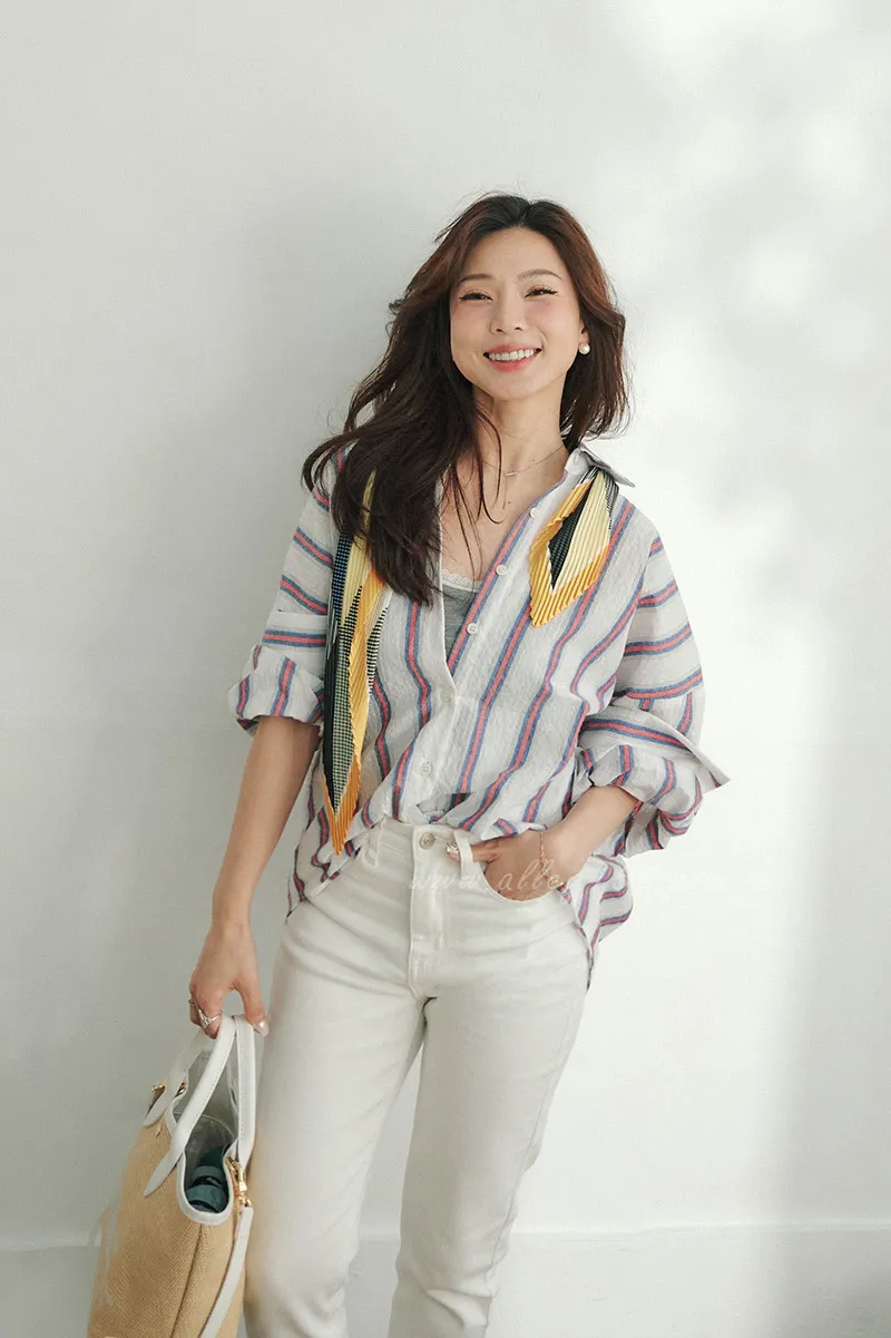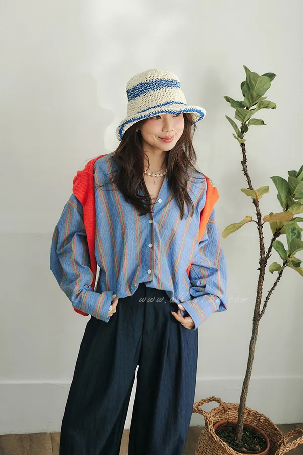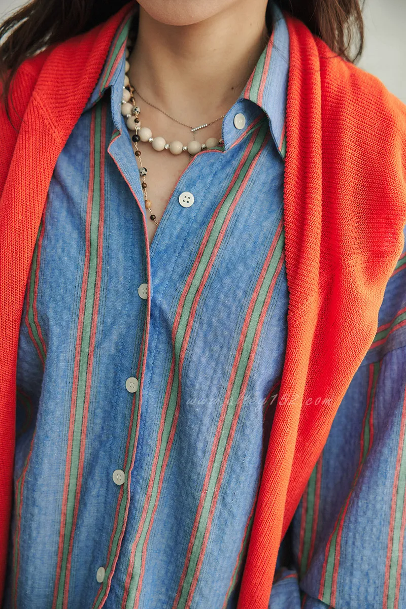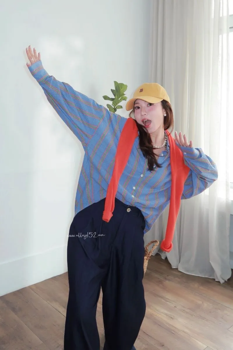 ex:藍色襯衫有橘色線條就配橘色披肩