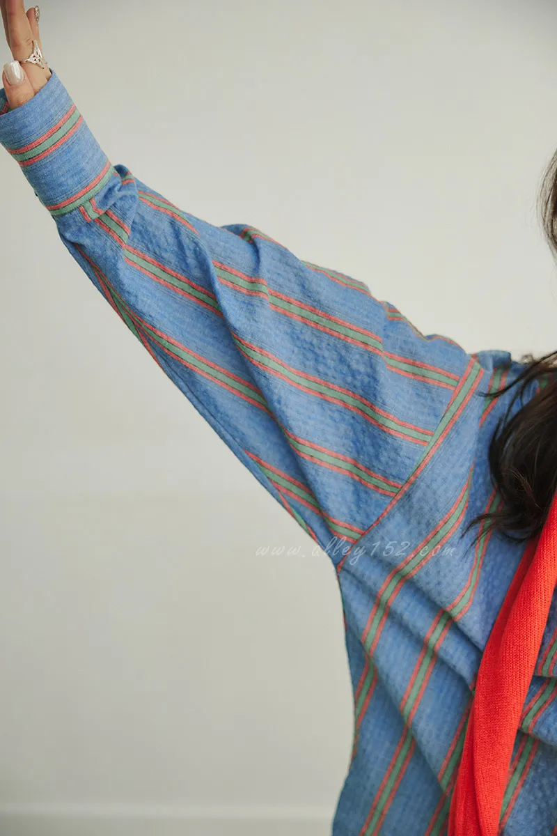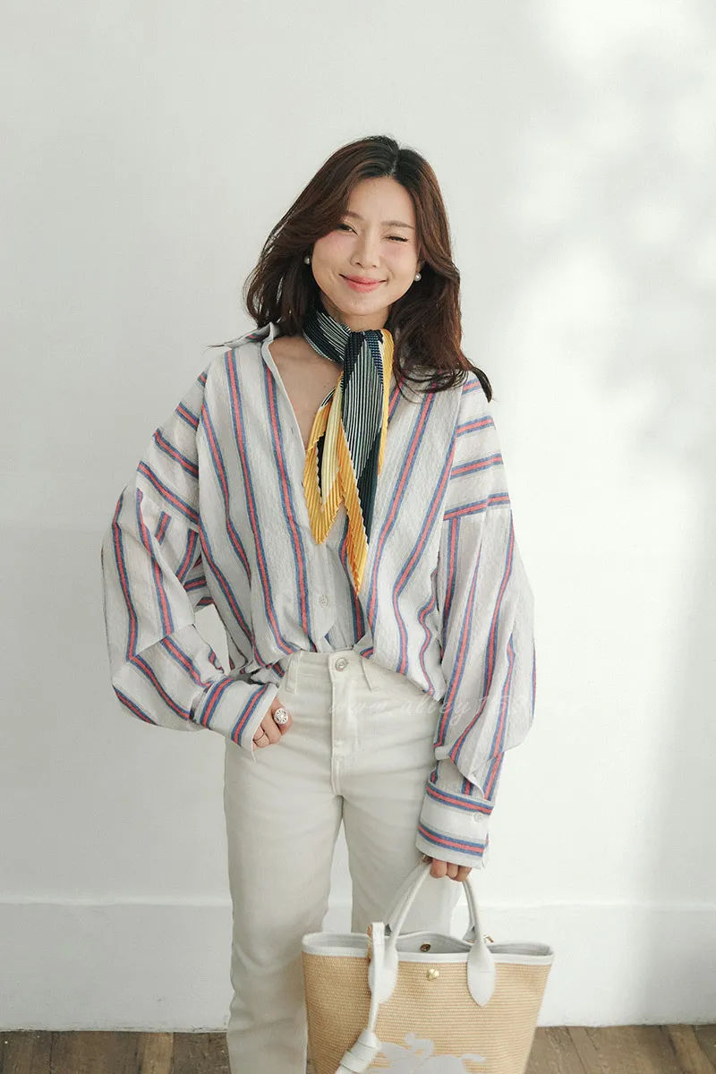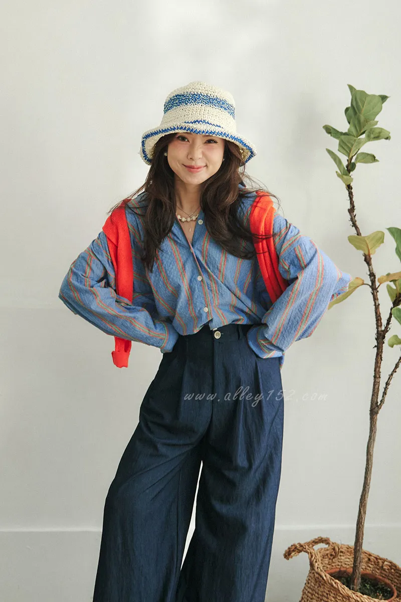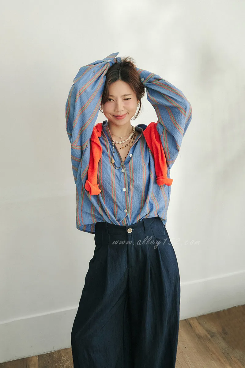 ex:藍色襯衫有橘色線條就配橘色披肩