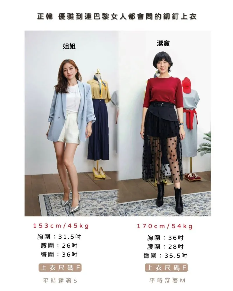 | 名字 | 身高 | 體重 | 胸圍 | 腰圍 | 臀圍 | 平常穿 | 此款穿 |
